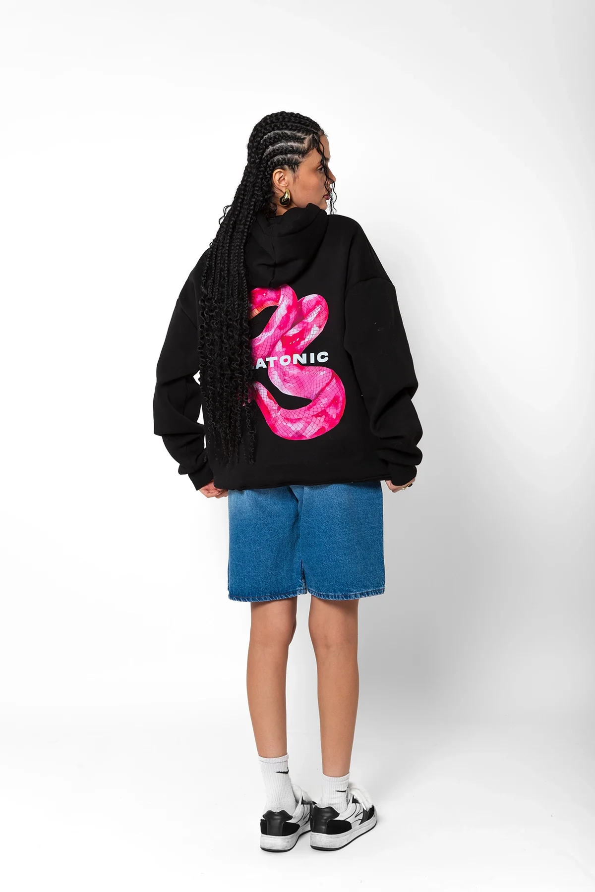PLATONİC BASKILI OVERSİZE UNİSEX PREMİUM SİYAH HOODİE