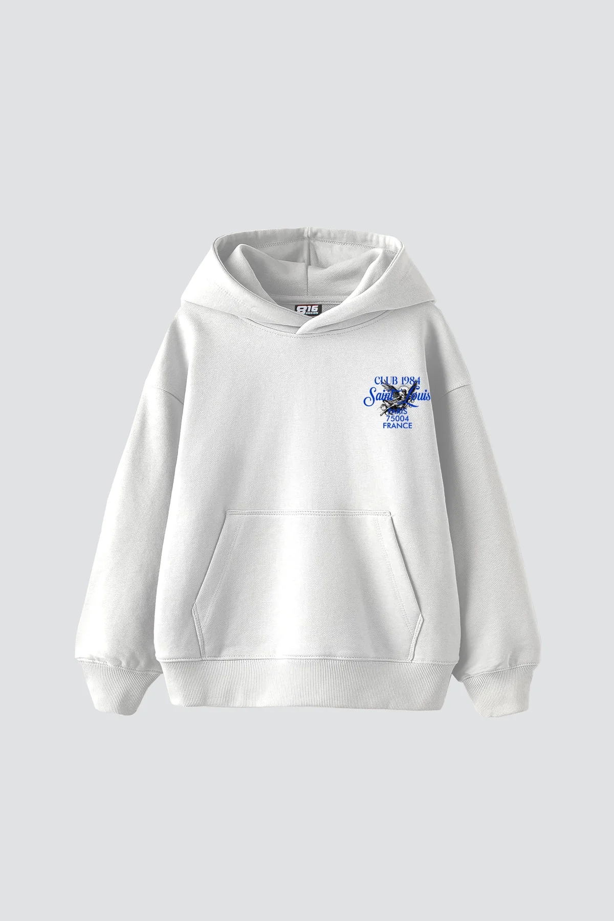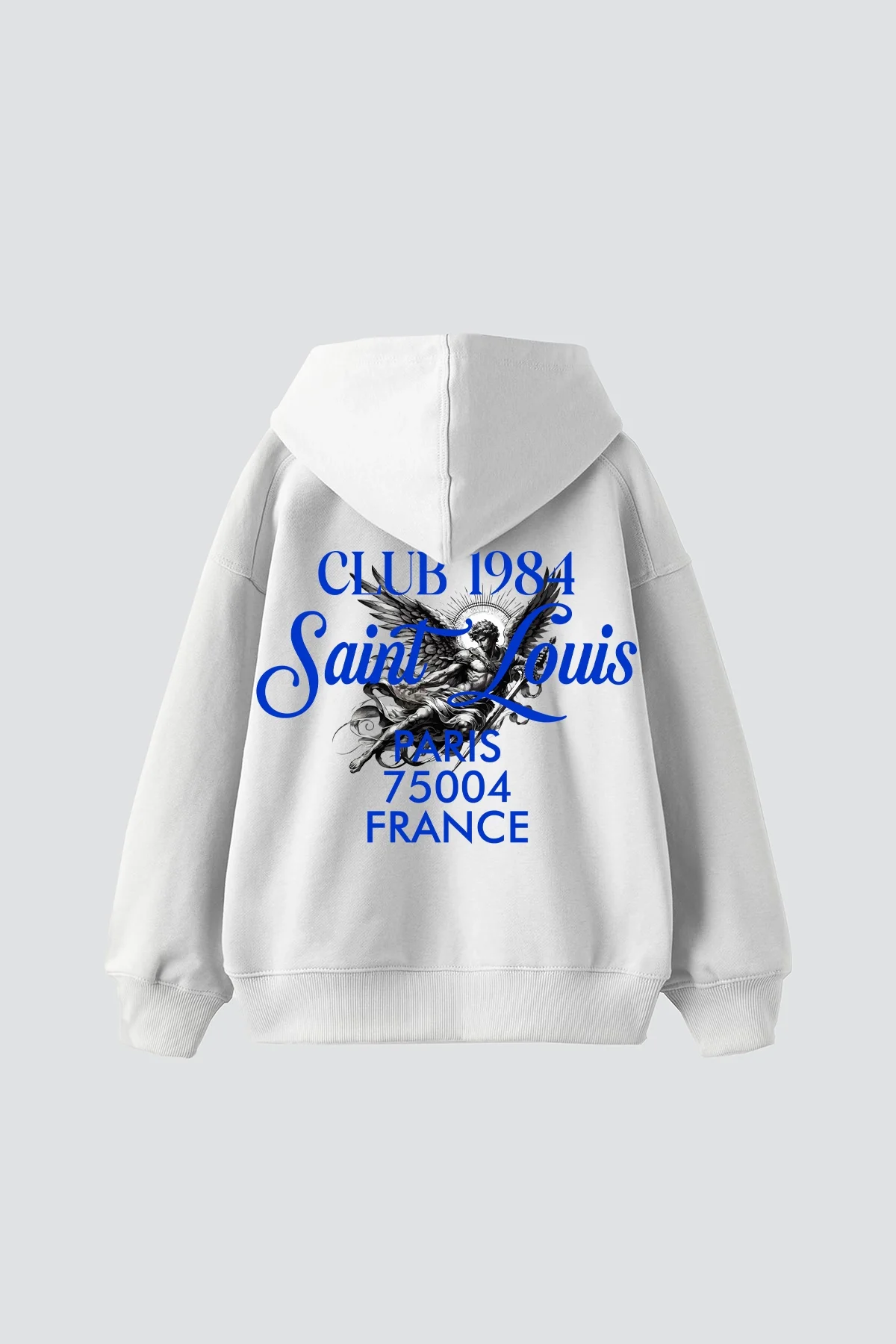 SAİNT LOUİS BASKILI OVERSİZE UNİSEX PREMİUM BEYAZ HOODİE
