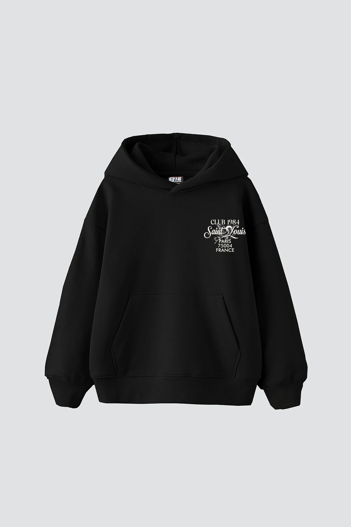 SAİNT LOUİS BASKILI OVERSİZE UNİSEX PREMİUM SİYAH HOODİE