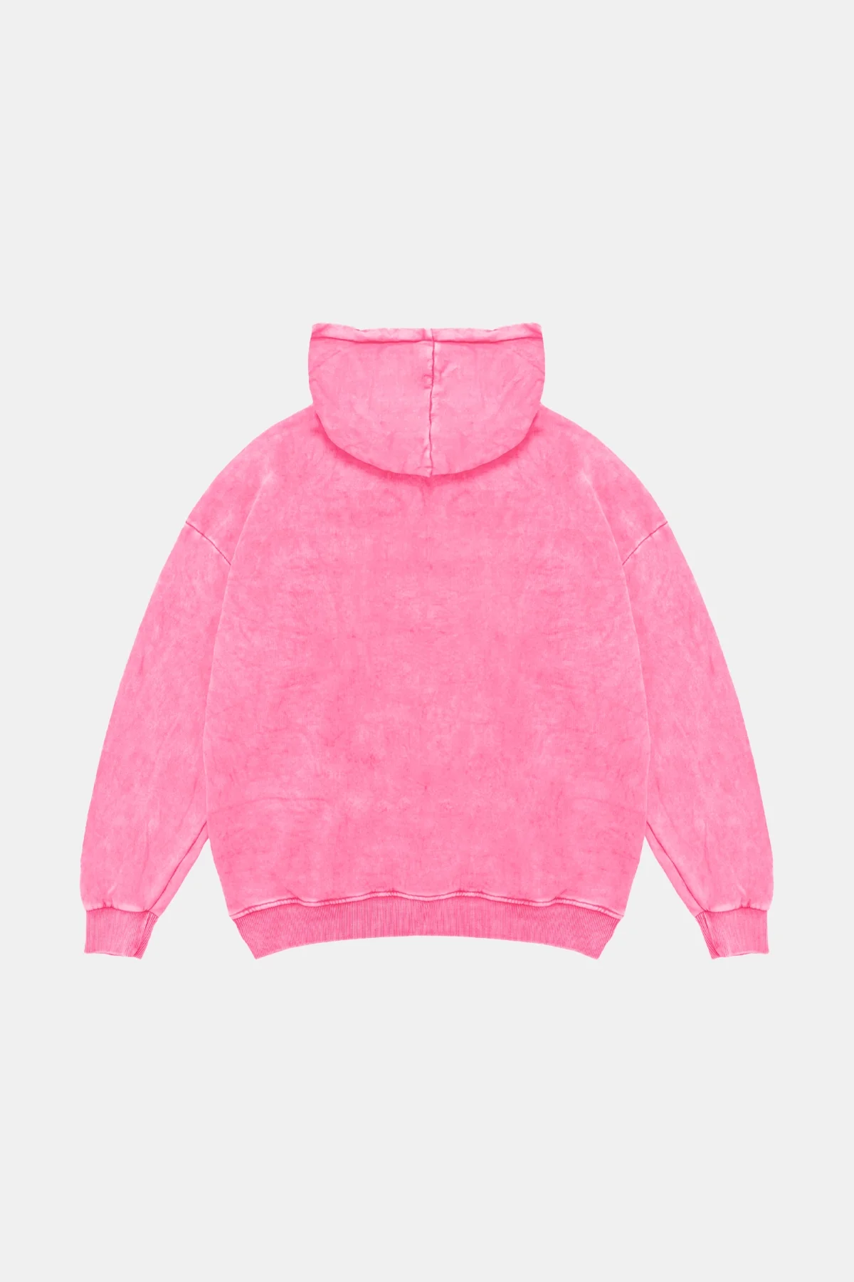 Sardines Baskılı Oversize Kadın Yıkamalı Pembe Hoodie