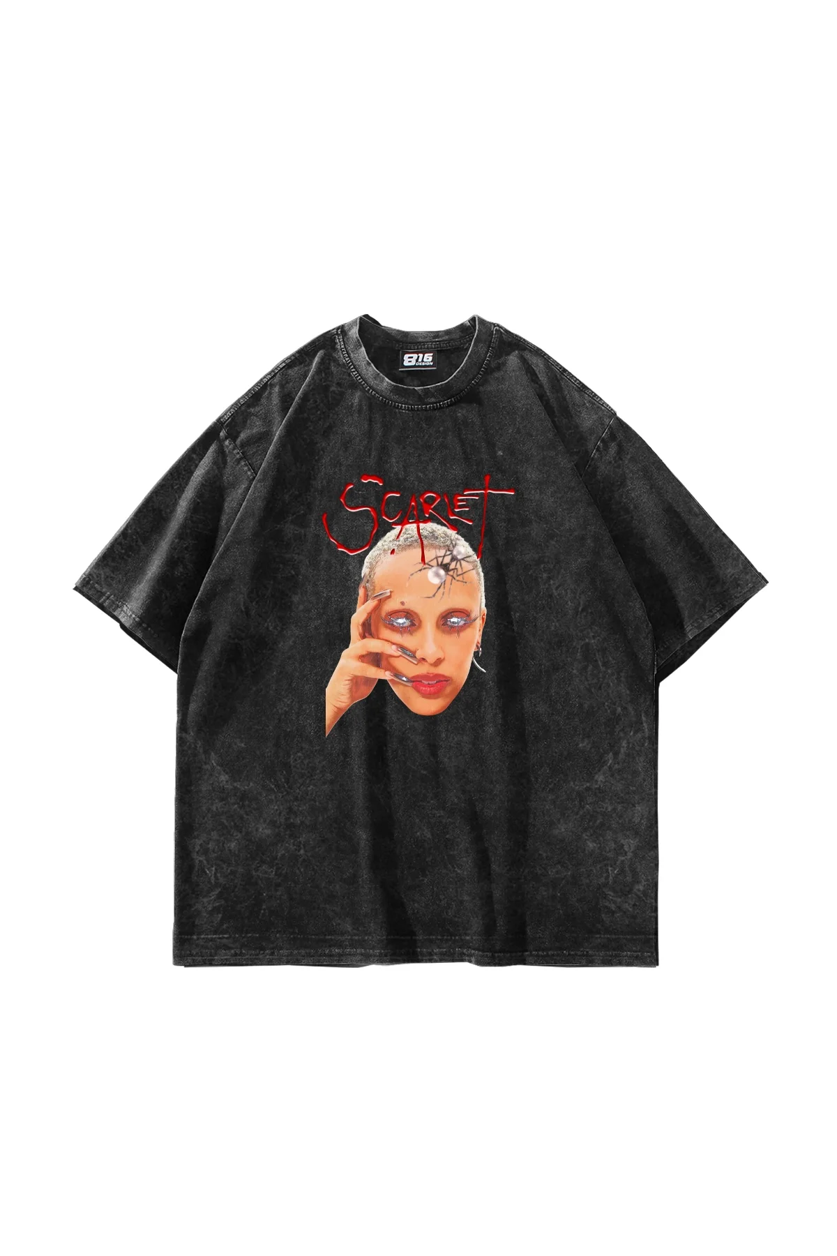 Scarlet Doja Cat baskılı oversize unisex yıkanmış siyah tshirt ile sokak modasına uyum sağlayın, Bak Moda kalitesiyle şıklığı keşfedin!
