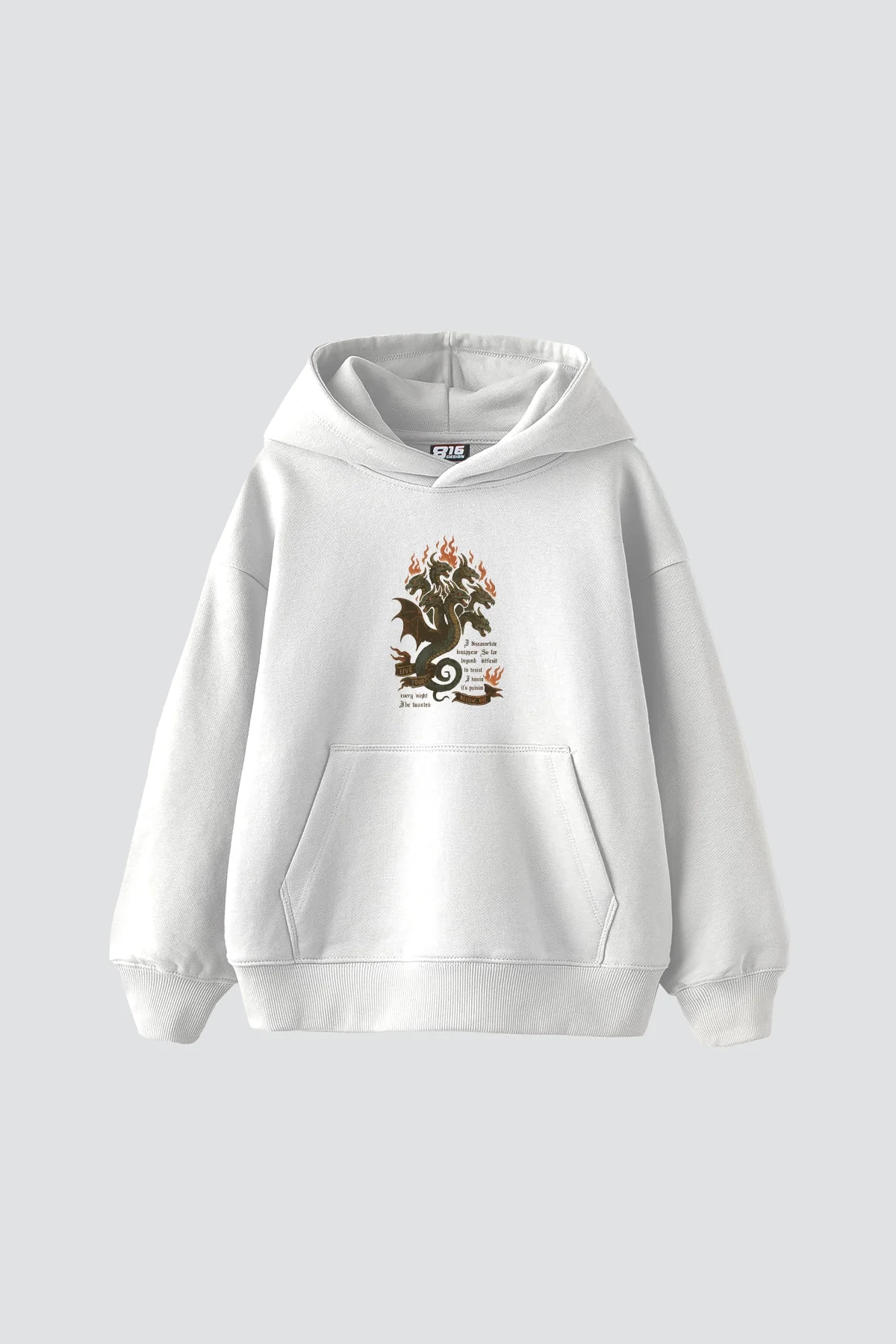 Sokak stiline ışıltılı bir dokunuş: Seven-Headed Baskılı Beyaz Hoodie, oversize kesimi ve göz alıcı detaylarıyla tarzını cesurca yansıtmak isteyenler için tasarlandı.