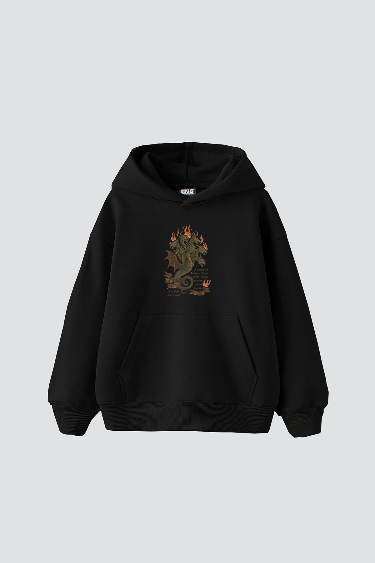 Sokak stiline ışıltılı bir dokunuş: Seven-Headed Baskılı Siyah Hoodie, oversize kesimi ve göz alıcı detaylarıyla tarzını cesurca yansıtmak isteyenler için tasarlandı.