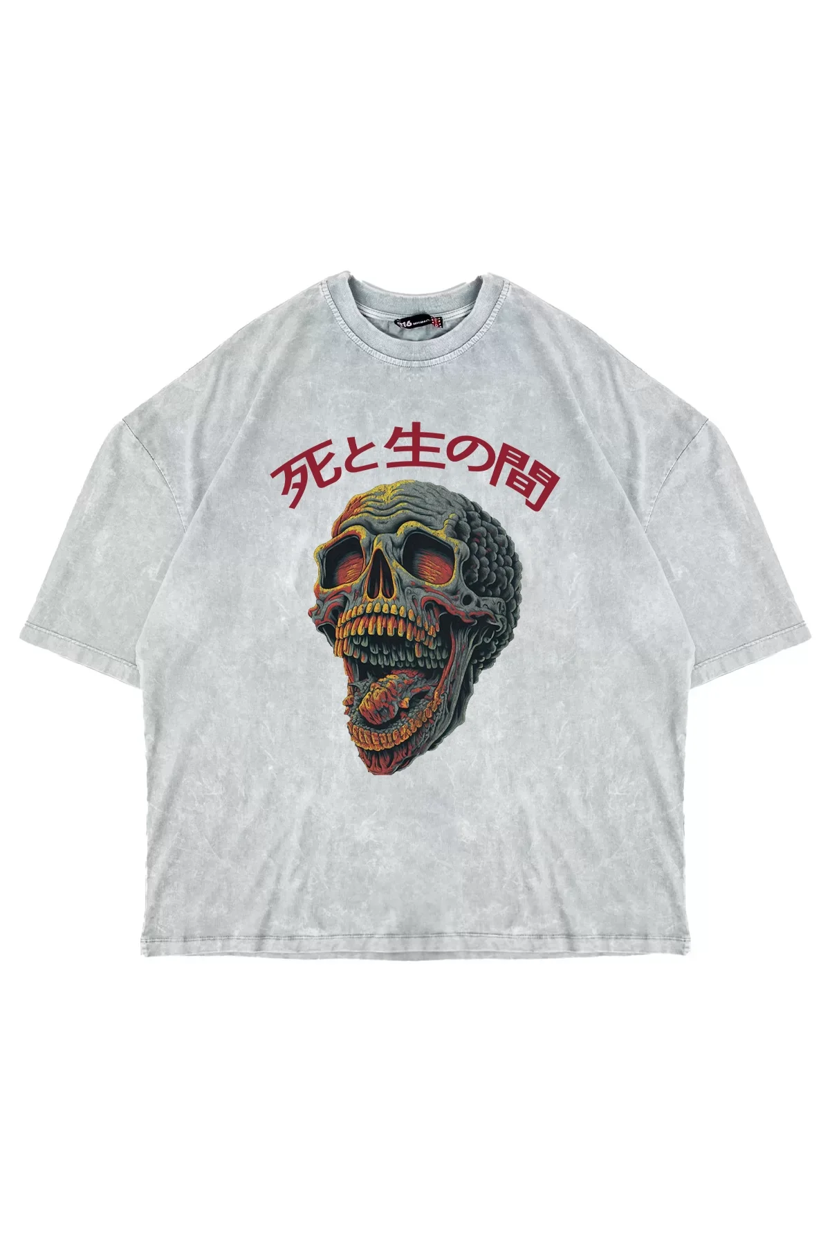 SKULL SCREAM BASKILI OVERSİZE UNİSEX YIKAMALI BEYAZ TSHİRT