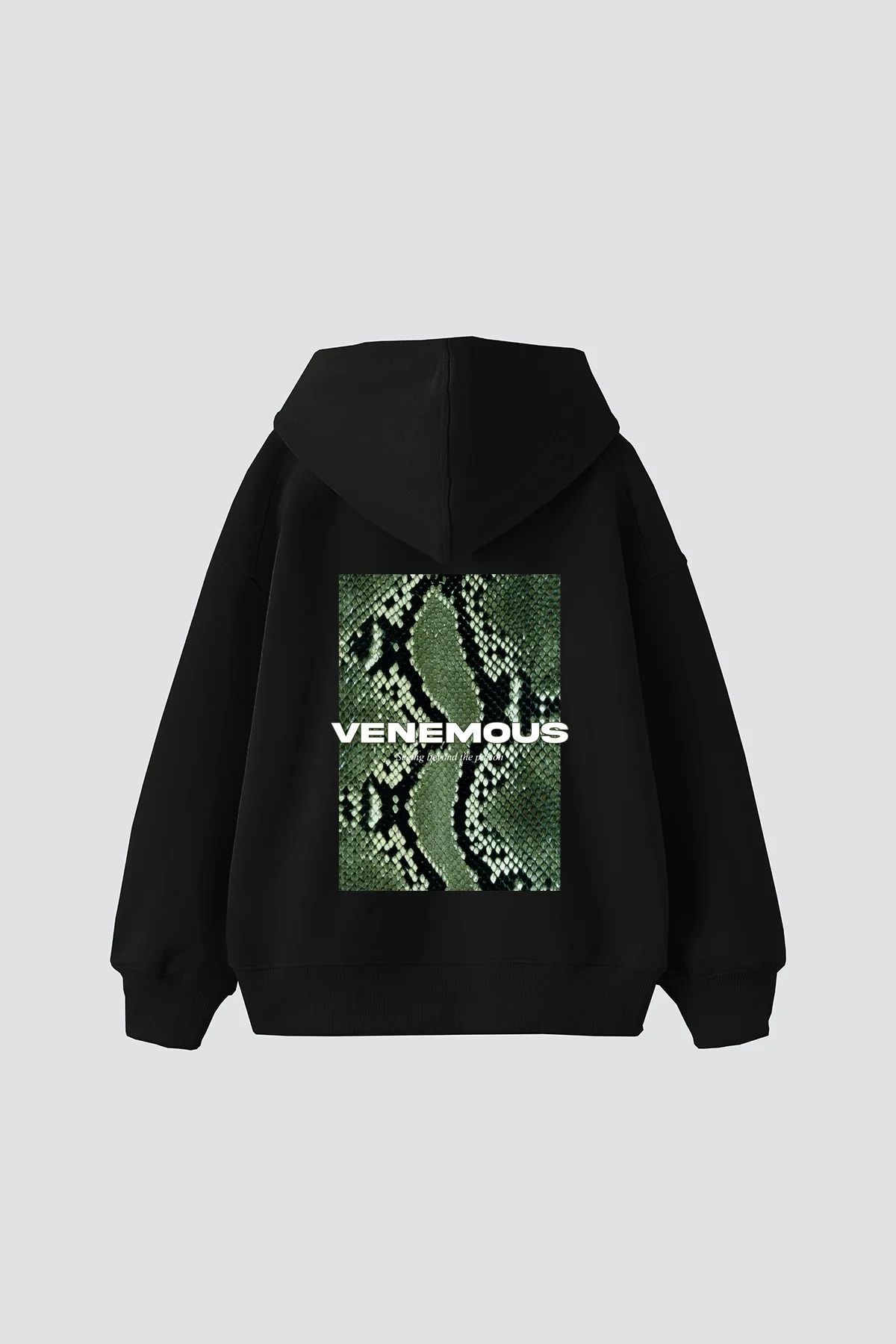 SNAKE VENEMOUS BASKILI OVERSİZE UNİSEX PREMİUM SİYAH HOODİE