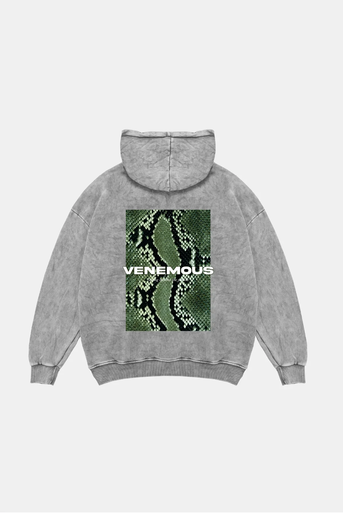 SNAKE VENEMOUS BASKILI OVERSİZE UNİSEX PREMİUM YIKAMALI BEYAZ HOODİE