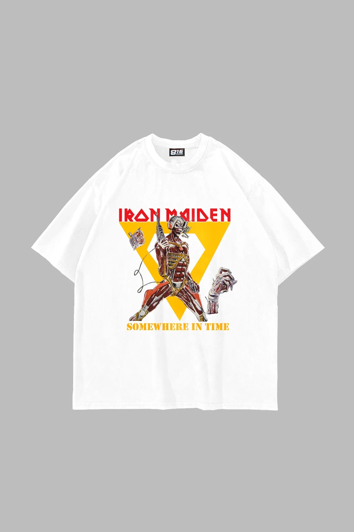 SOMEWHERE IN TİME BASKILI OVERSİZE UNİSEX BEYAZ TSHİRT