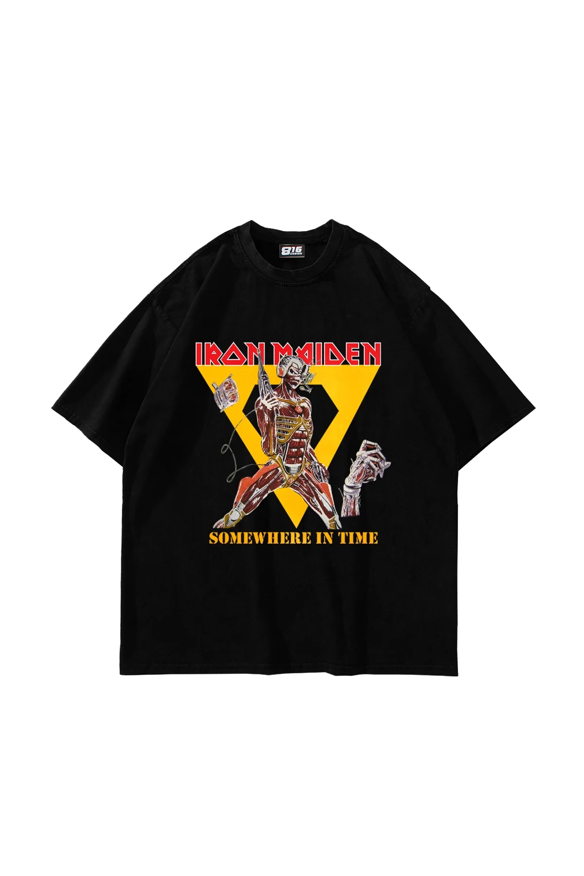 SOMEWHERE IN TİME BASKILI OVERSİZE UNİSEX SİYAH TSHİRT