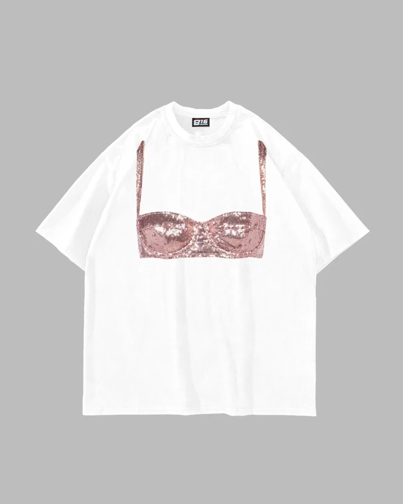 Disco Bralet Baskılı Oversize Unisex Beyaz Tshirt