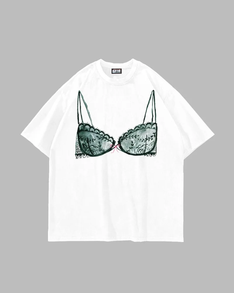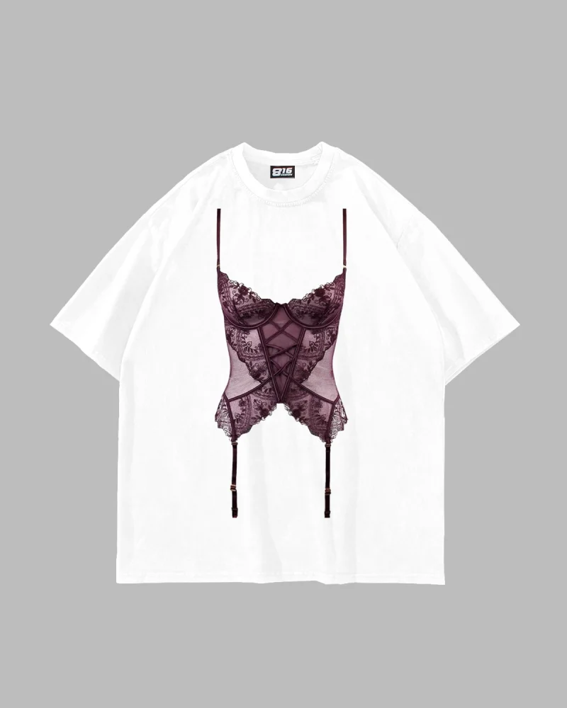 Lingerie Baskılı Oversize Unisex Beyaz Tshirt