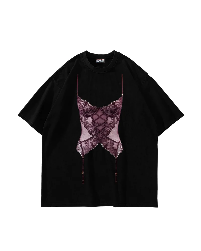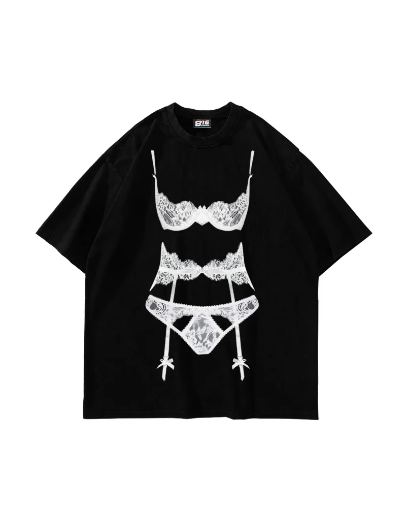 Lingerie Baskılı Oversize Unisex Siyah Tshirt