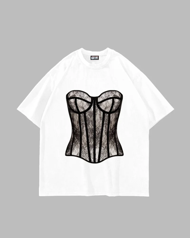 Fit Corset Baskılı Oversize Unisex Beyaz Tshirt