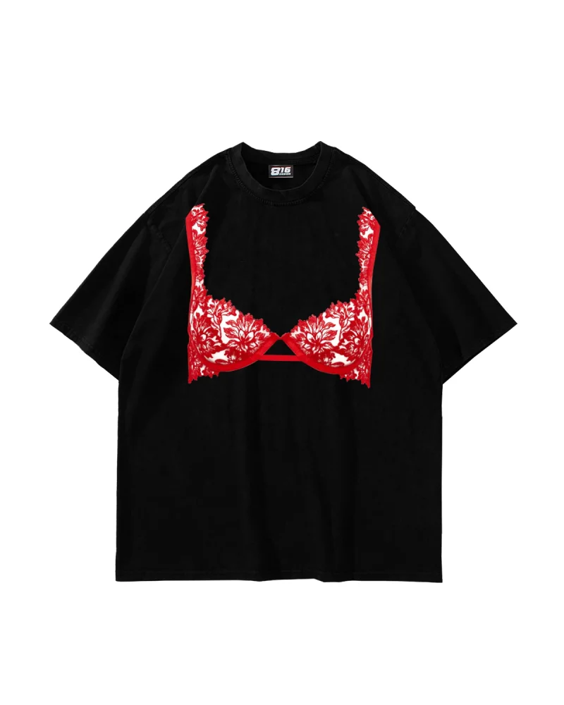 Red Bra Baskılı Oversize Unisex Siyah Tshirt