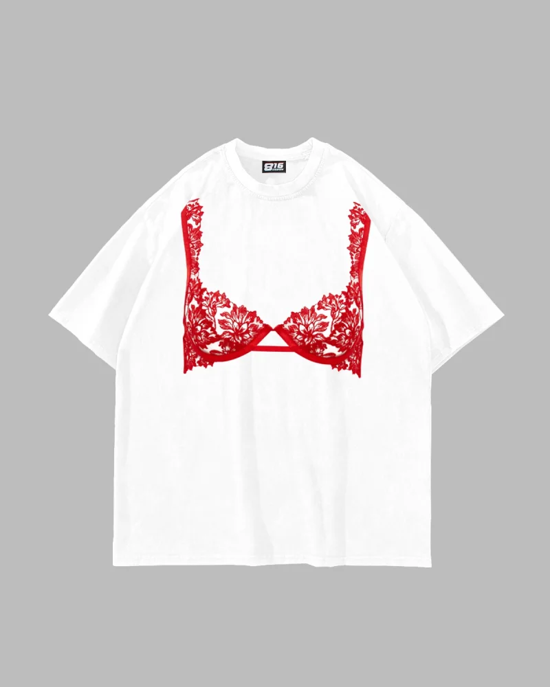 Red Bra Baskılı Oversize Unisex Beyaz Tshirt