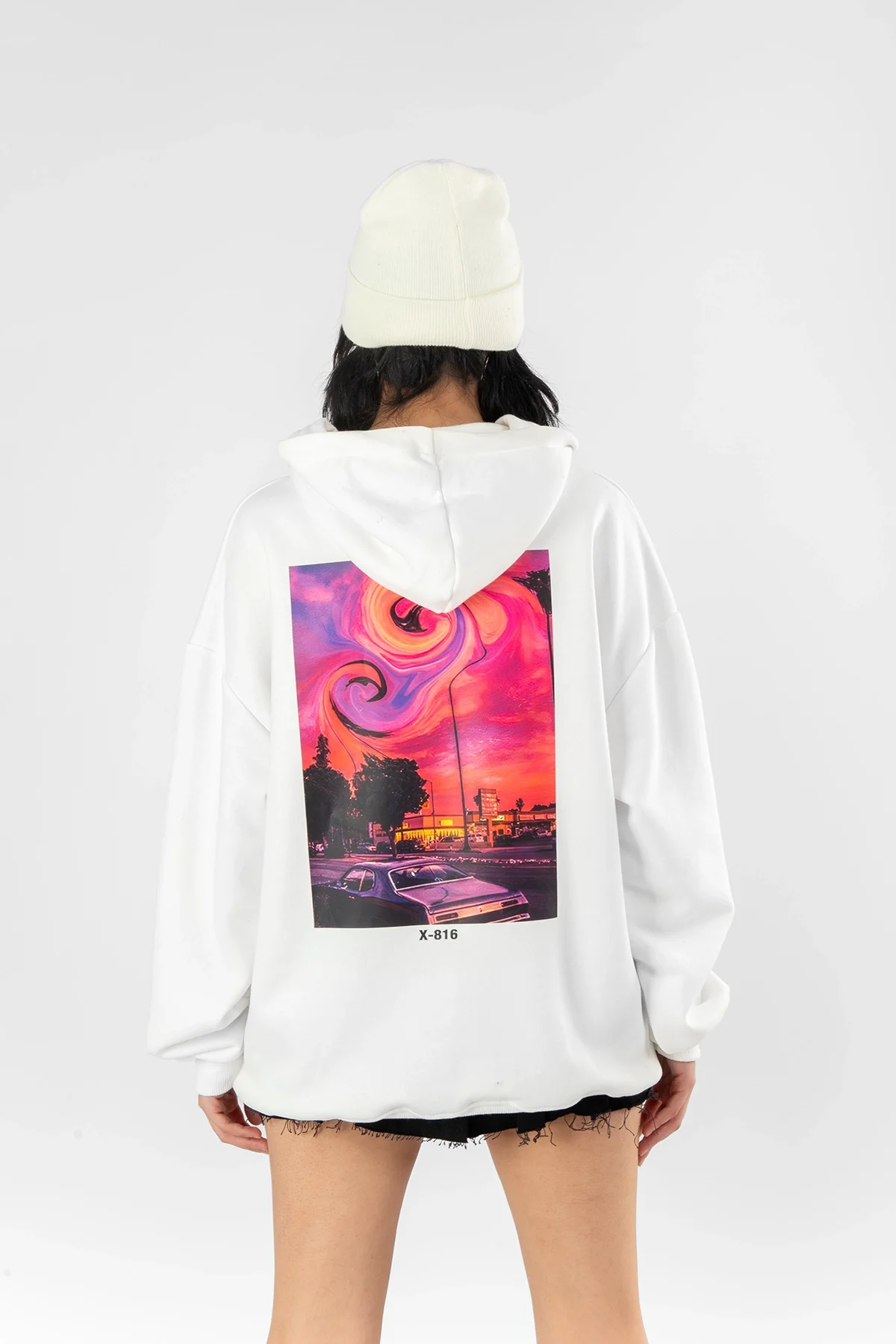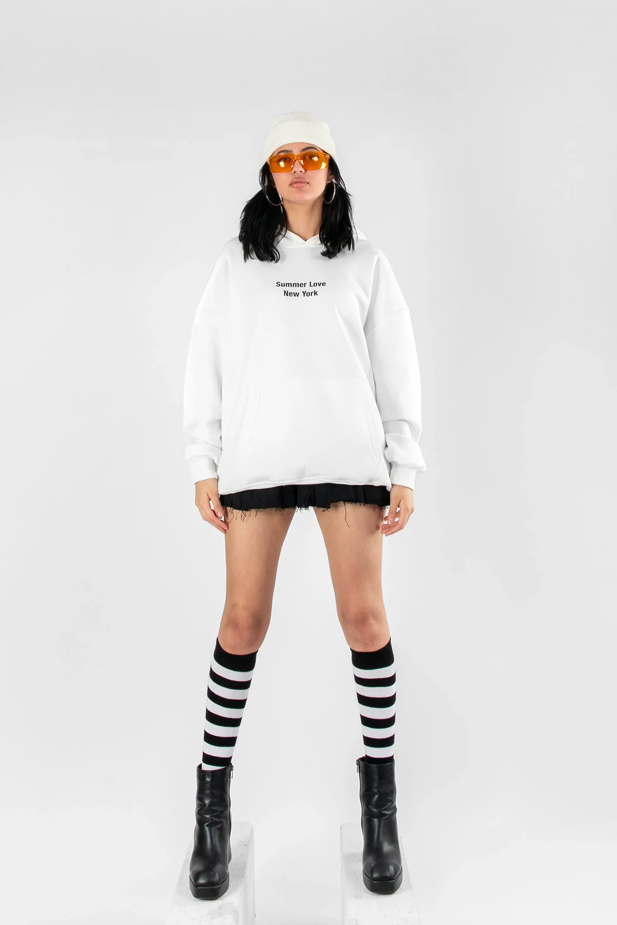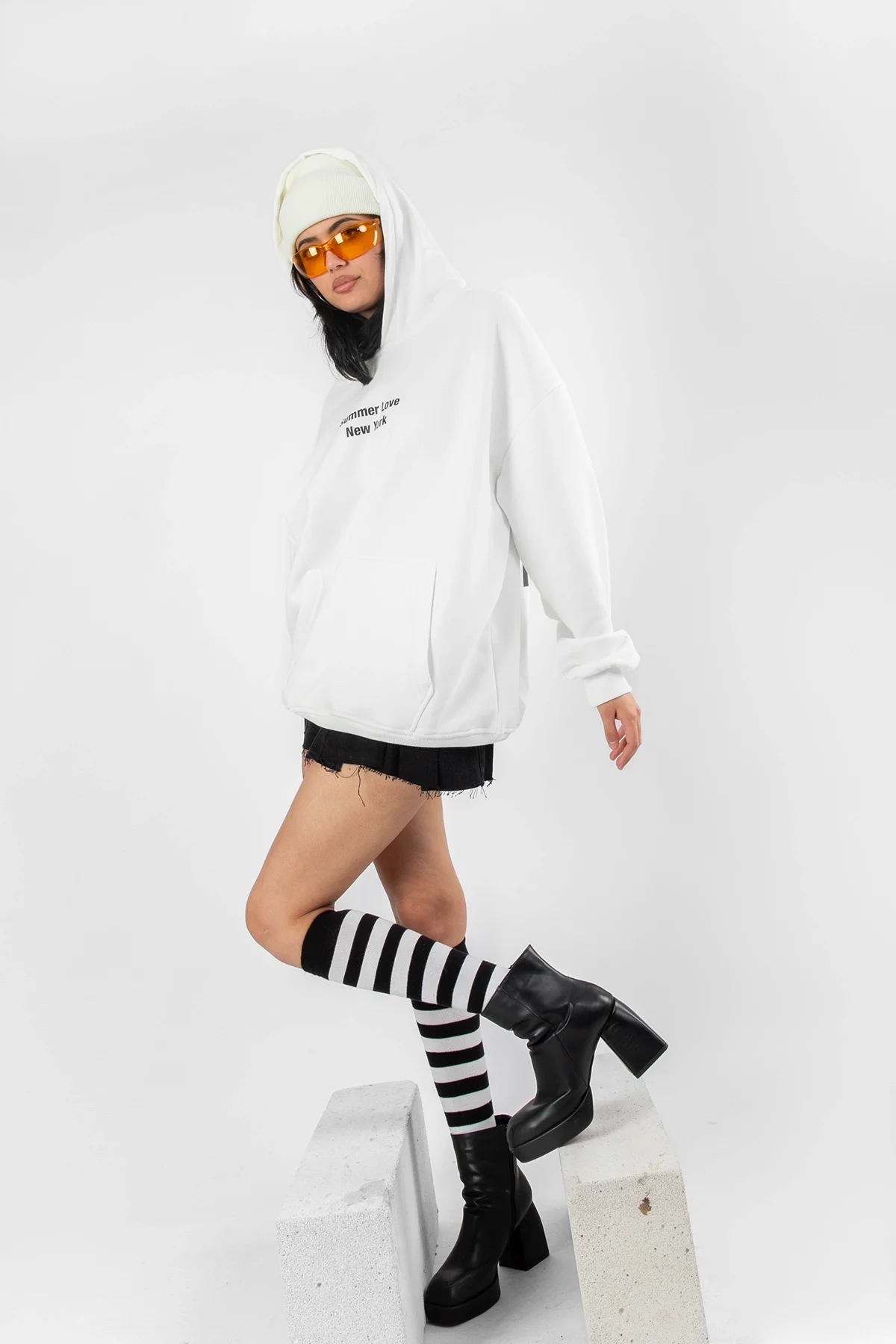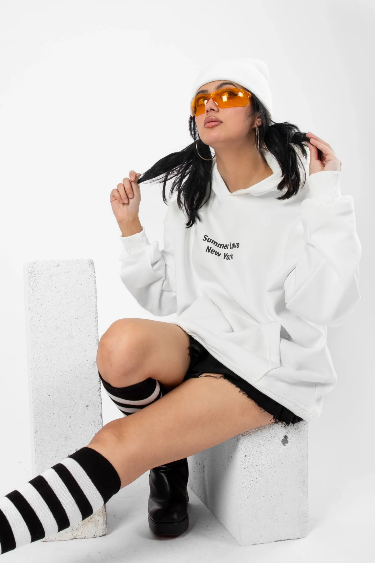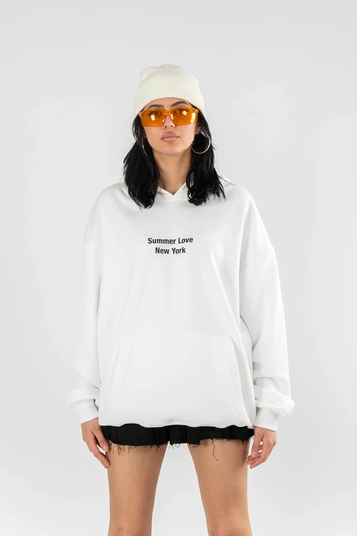 SUMMER LOVE SIRT BASKILI OVERSİZE UNİSEX BEYAZ HOODİE