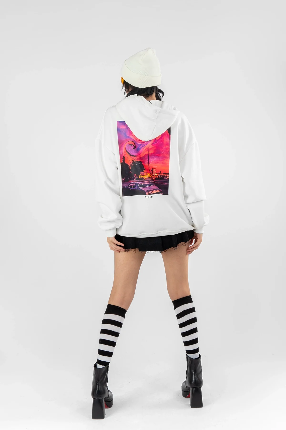 Palm Kissed Baskılı Oversize Unisex Beyaz Hoodie