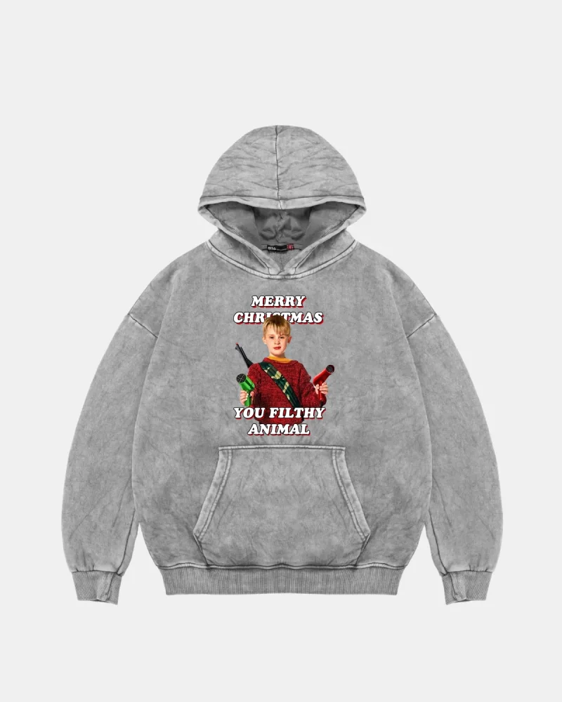 Christmas Home Alone Baskılı Oversize Unisex Yıkamalı Beyaz Hoodie