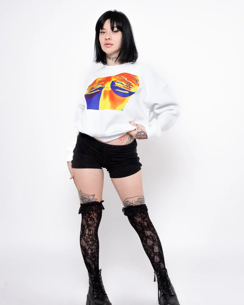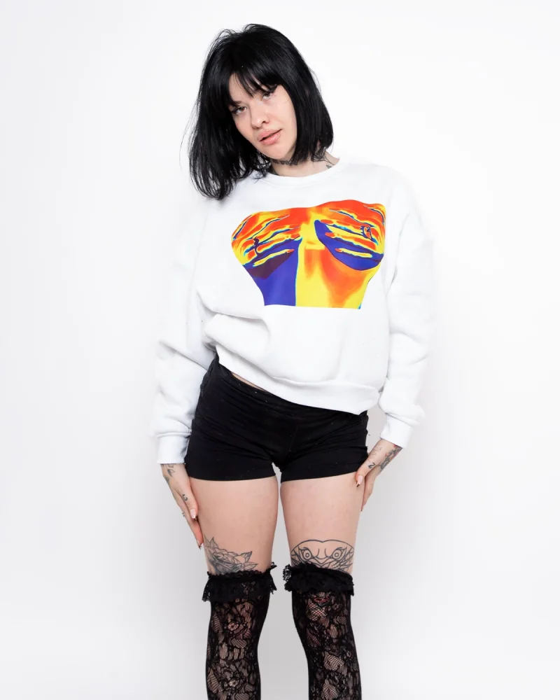 Thermal Boobs Baskılı Kapüşonsuz Relaxed Fit Kadın Beyaz Sweatshirt