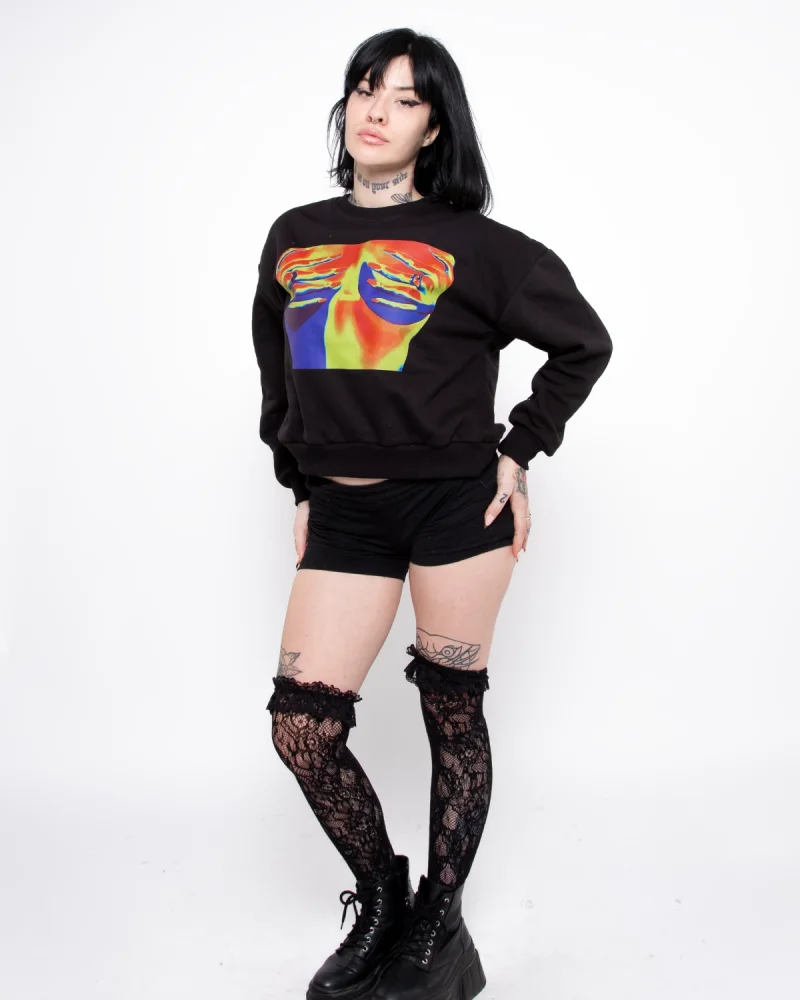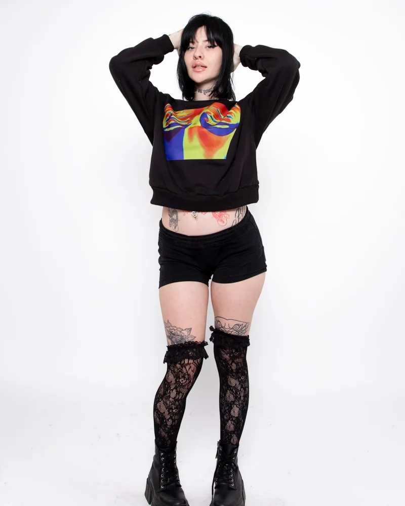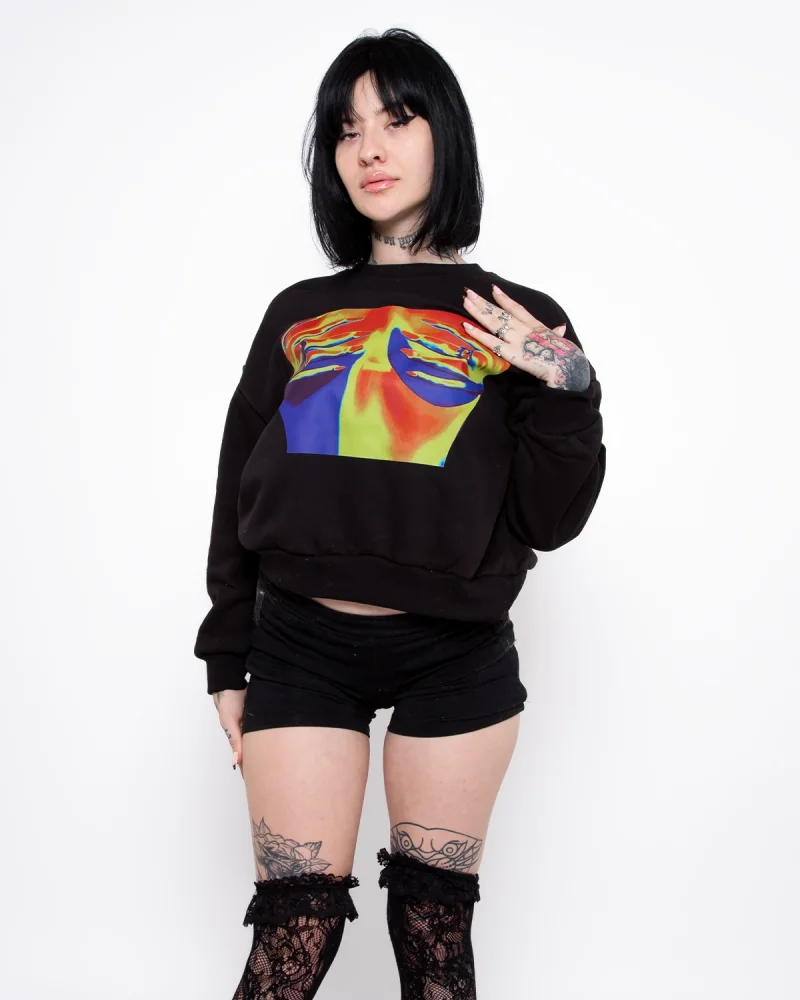 Thermal Boobs Baskılı Kapüşonsuz Relaxed Fit Kadın Siyah Sweatshirt