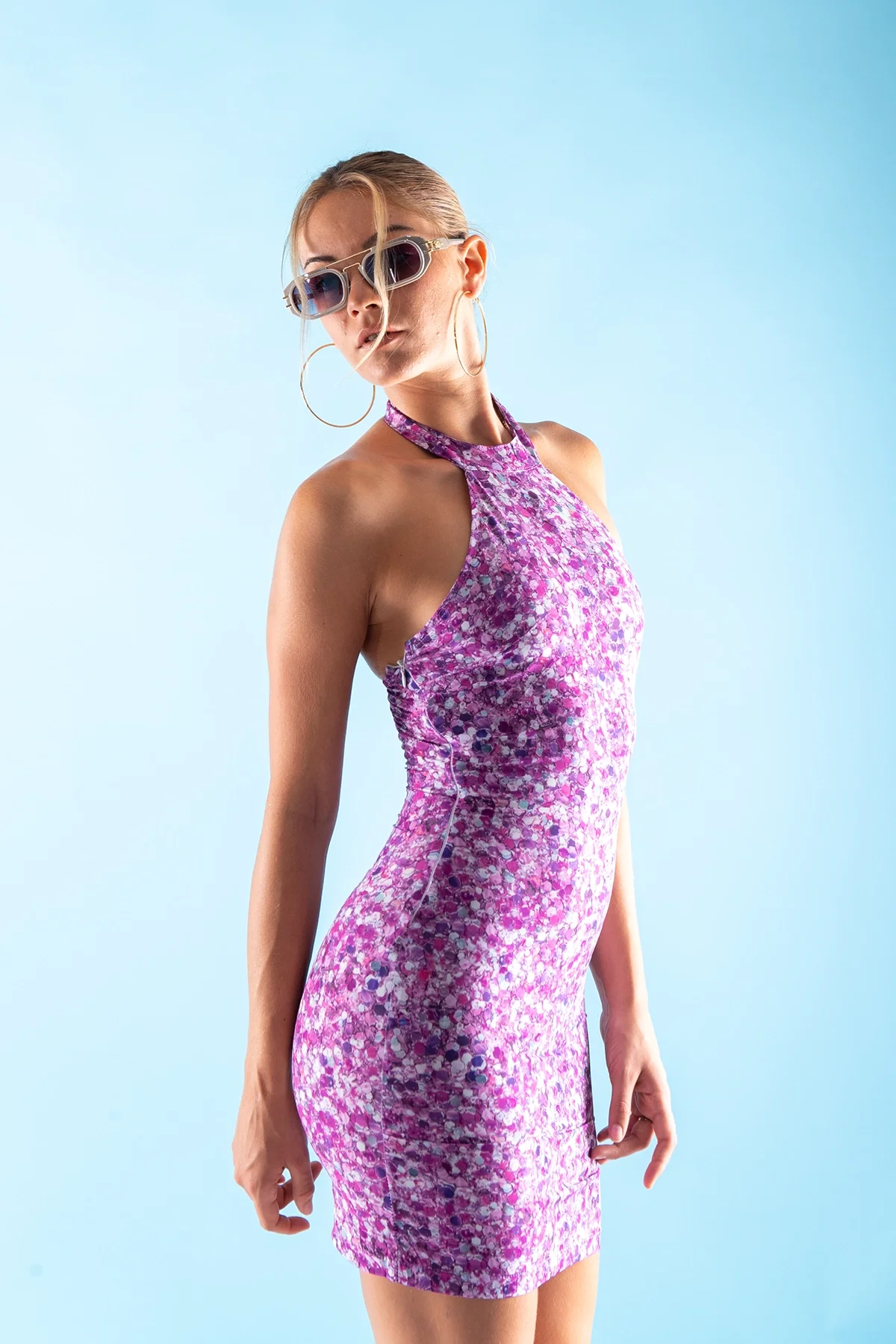 Göz alıcı mor rengiyle dikkat çeken bu mini elbise, zarif taş desenleri ve cesur sırt dekoltesiyle şıklığı yeniden tanımlıyor. Vücuda oturan kesimiyle feminen hatları ön plana çıkarırken, kaliteli kumaşı sayesinde gün boyu konfor sunar. Özel davetlerden gece partilerine kadar her ortamda ışıltınızla fark yaratmanızı sağlar. İnce askı detayı ve mini boyuyla modern ve sofistike bir tarz arayanlar için ideal bir seçim.