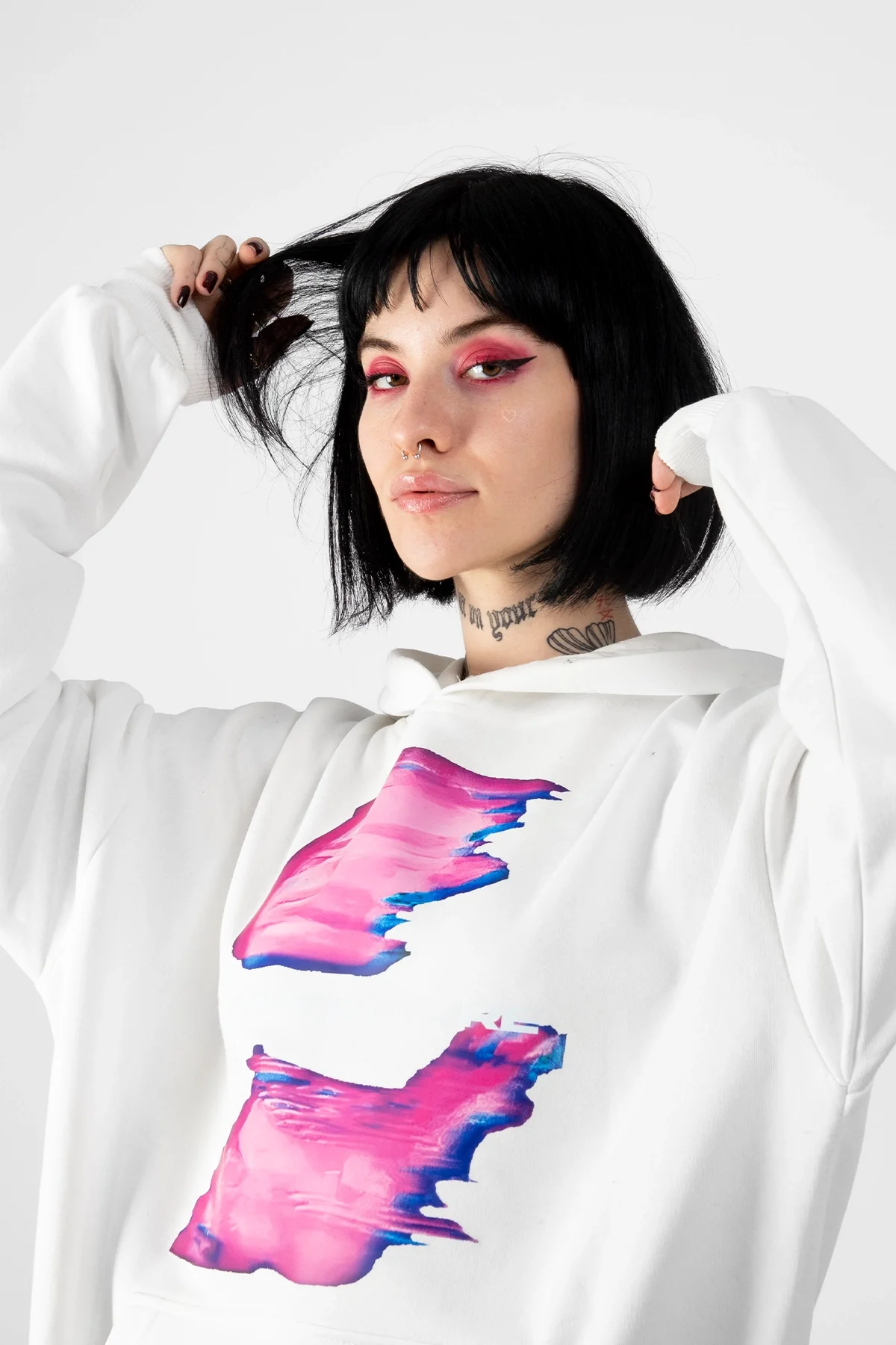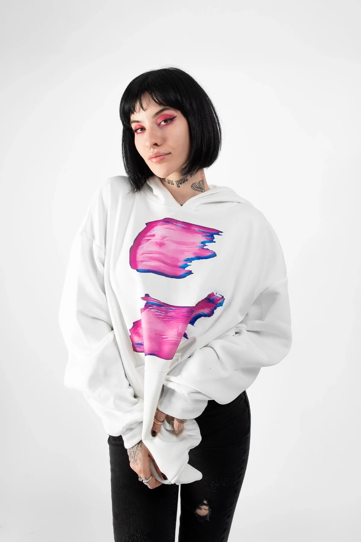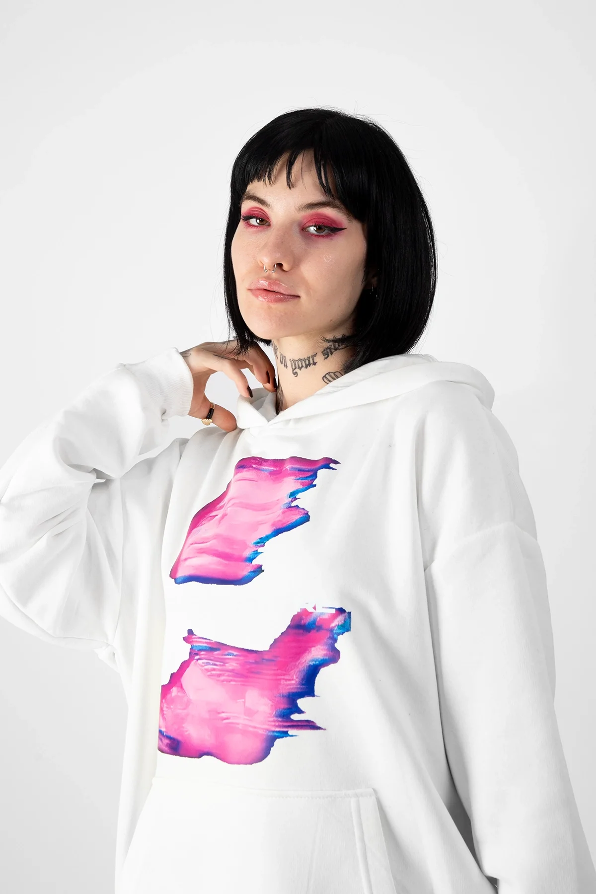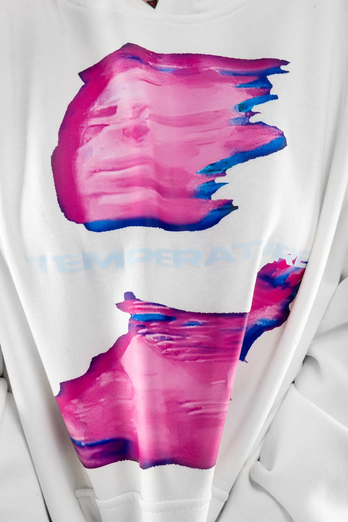 TEMPERATURE BASKILI OVERSİZE UNİSEX BEYAZ HOODİE