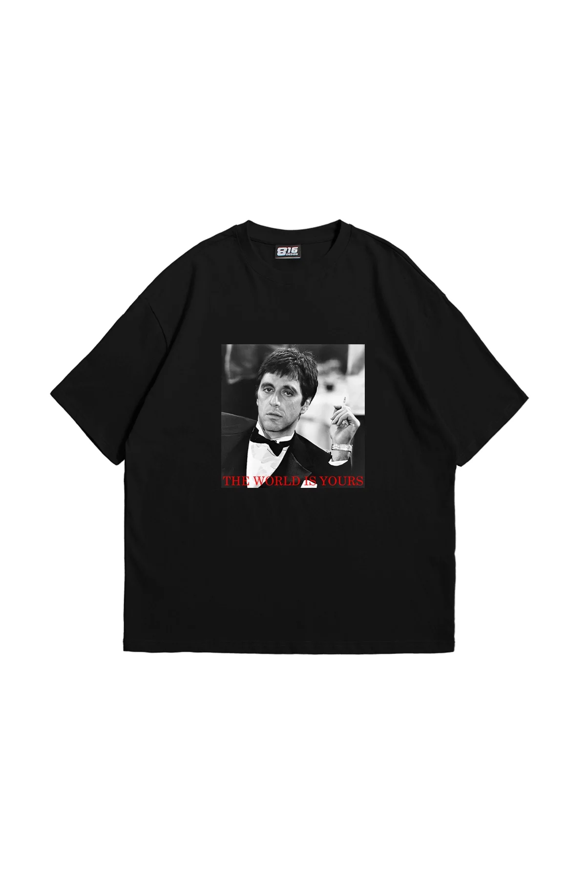 THE WORLD IS YOURS BASKILI OVERSİZE UNİSEX SİYAH TSHİRT