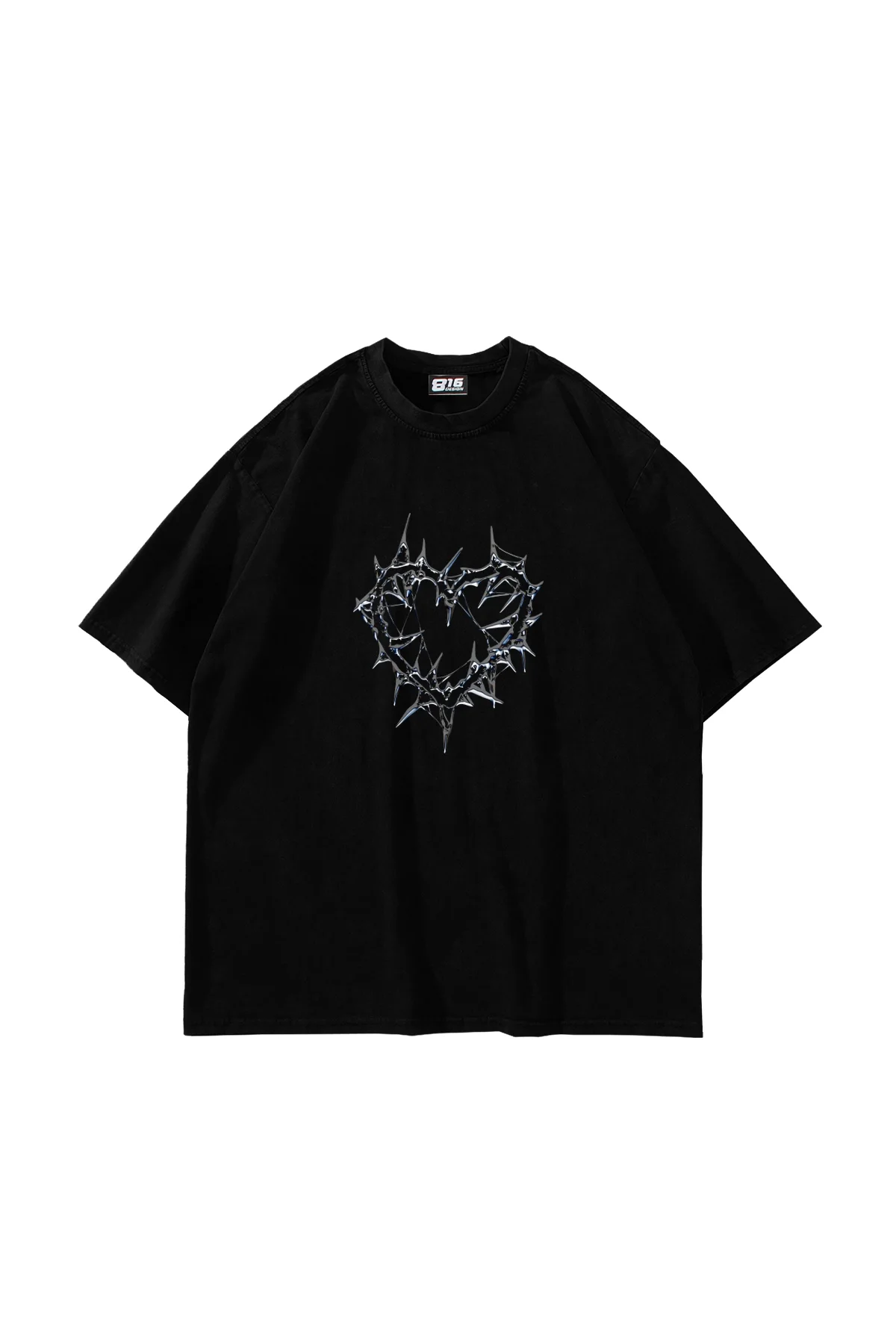 THORNY HEART BASKILI OVERSİZE UNİSEX SİYAH TSHİRT