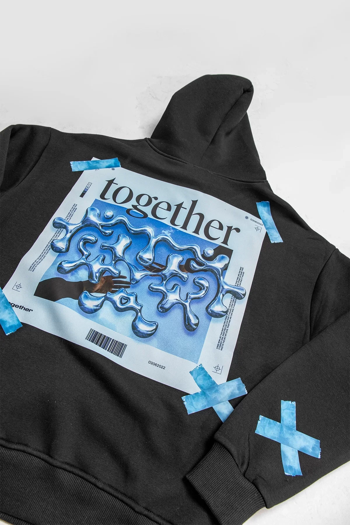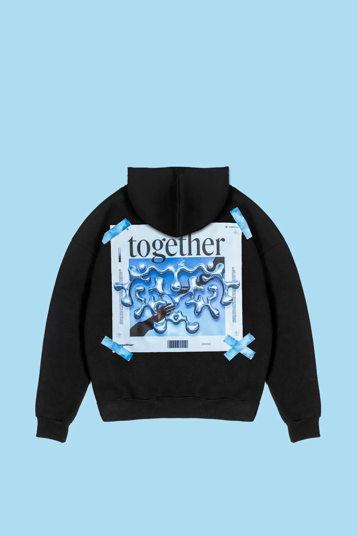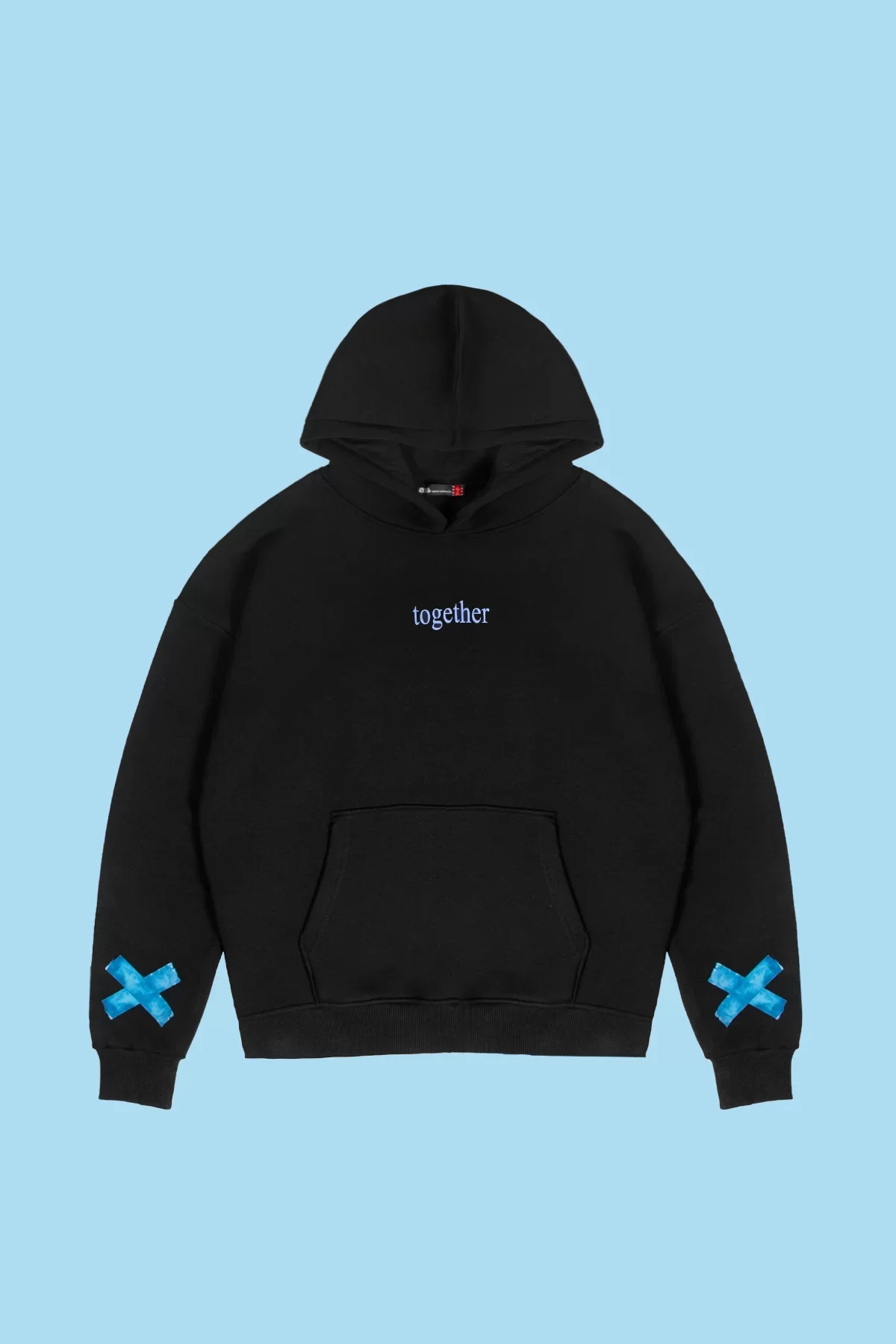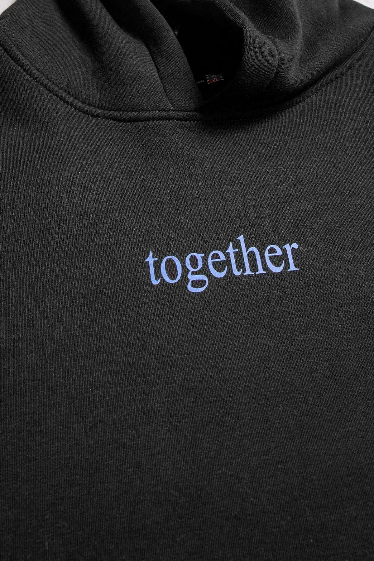 TOGETHER BASKILI OVERSİZE UNİSEX SİYAH HOODİE