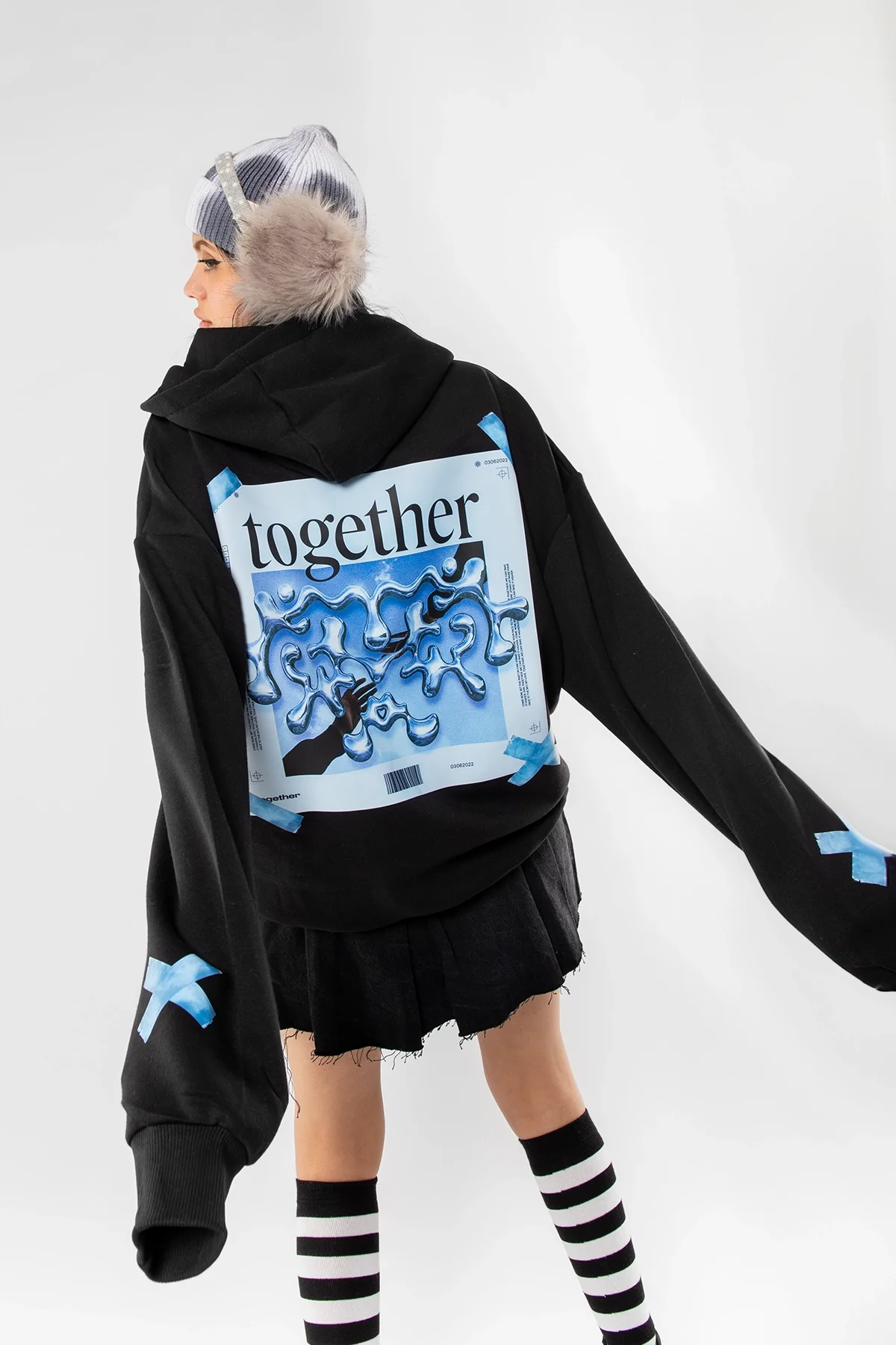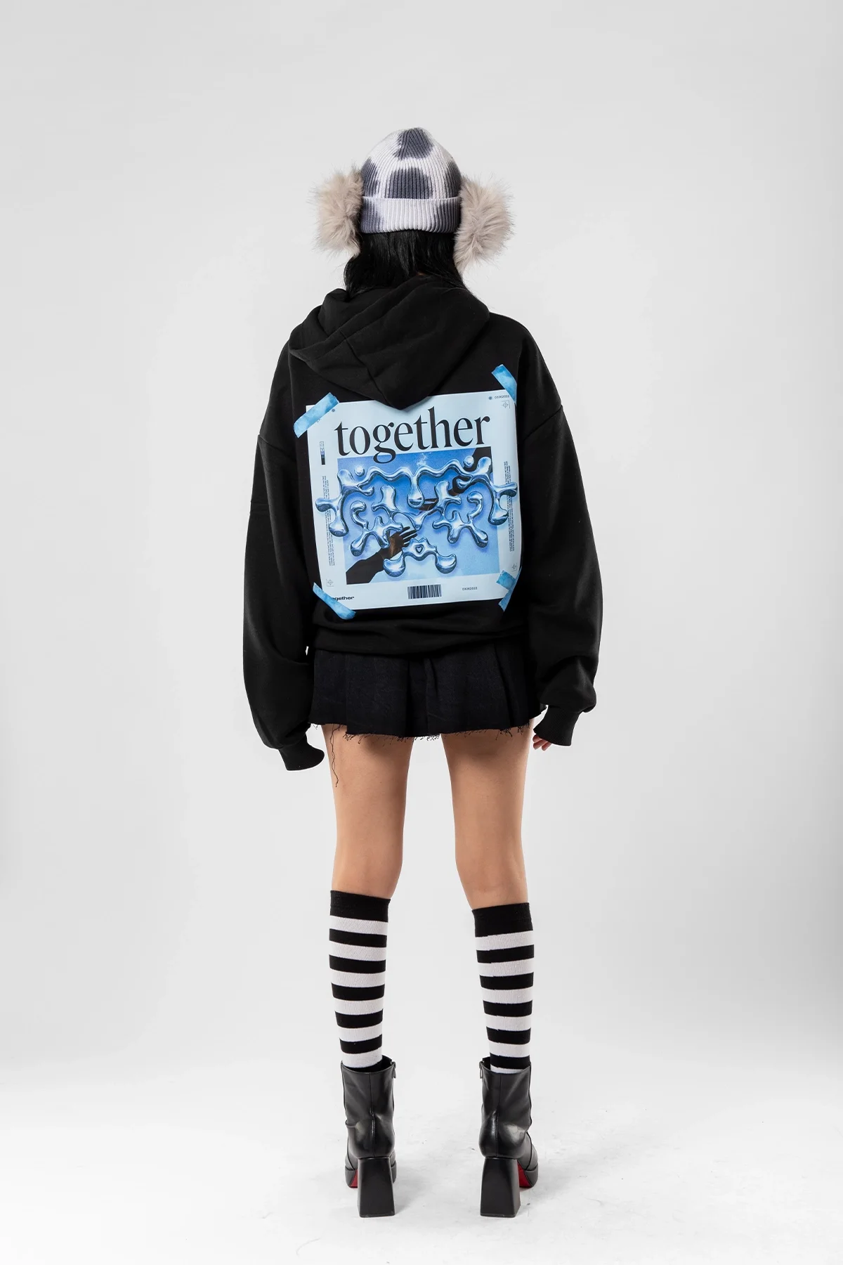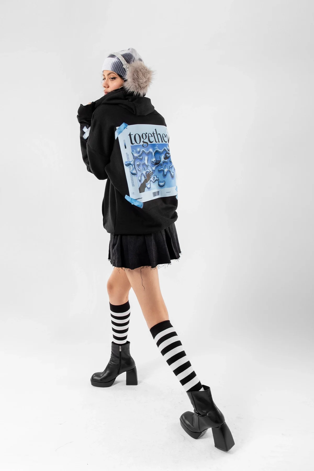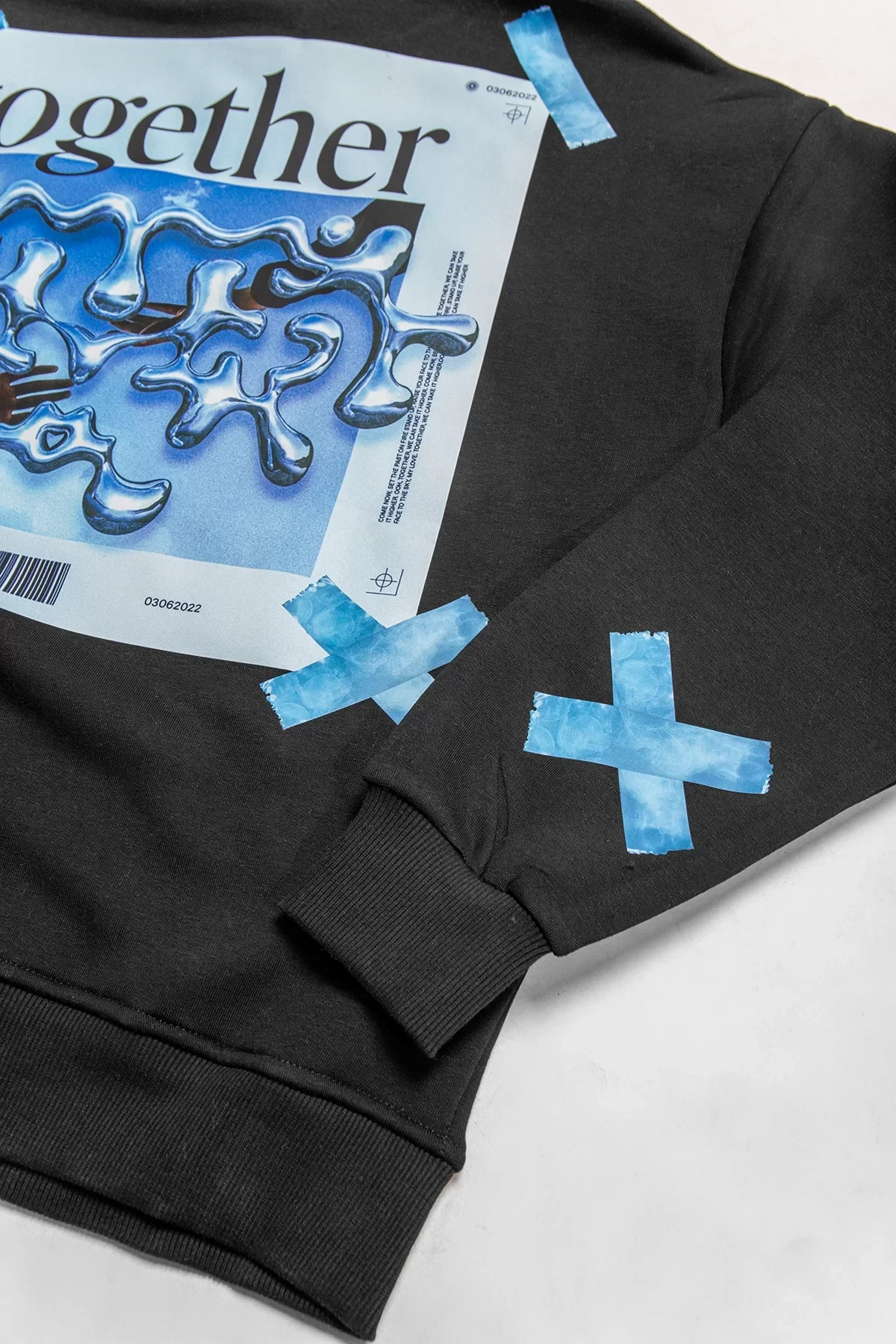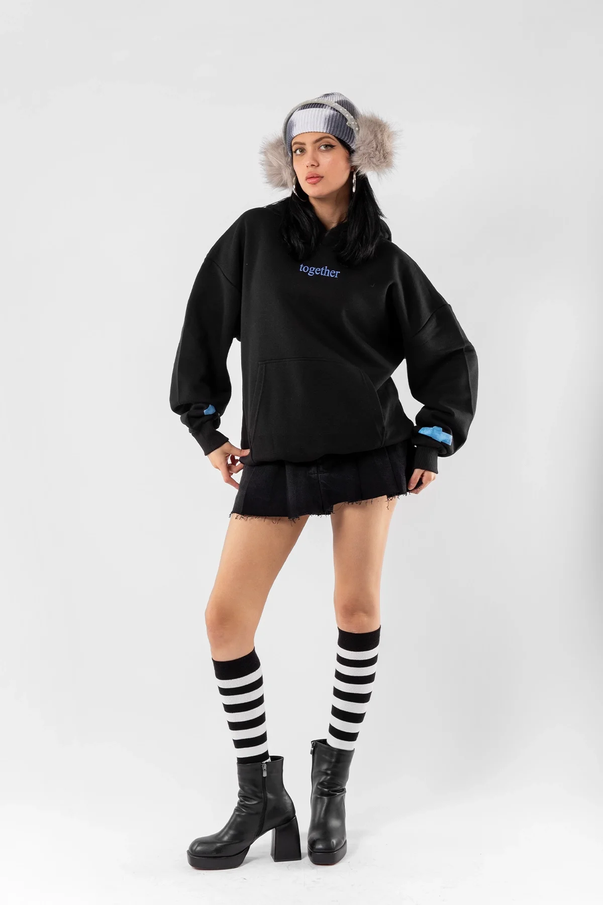 TOGETHER BASKILI OVERSİZE UNİSEX SİYAH HOODİE