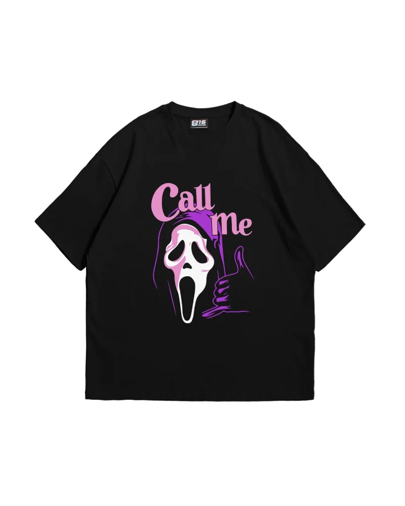 Call Me Baskılı Oversize Unisex Siyah Tshirt