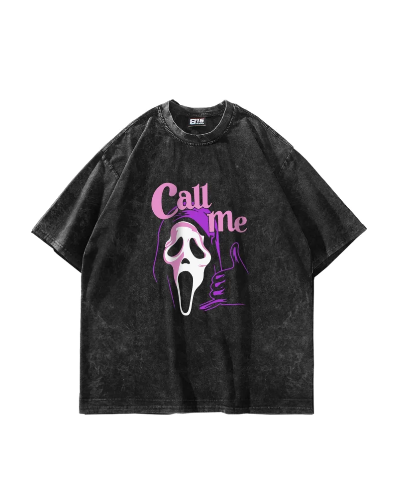 Call Me Baskılı Oversize Unisex Yıkamalı Siyah Tshirt