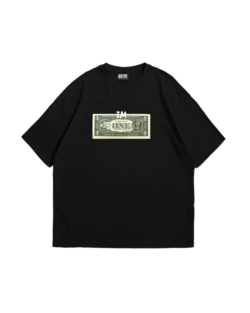Dollar Baskılı Oversize Unisex Siyah Tshirt