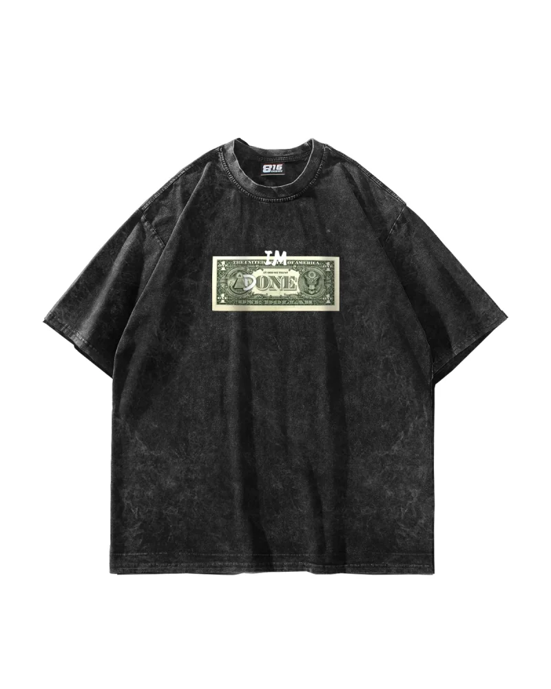 Dollar Baskılı Oversize Unisex Yıkamalı Siyah Tshirt