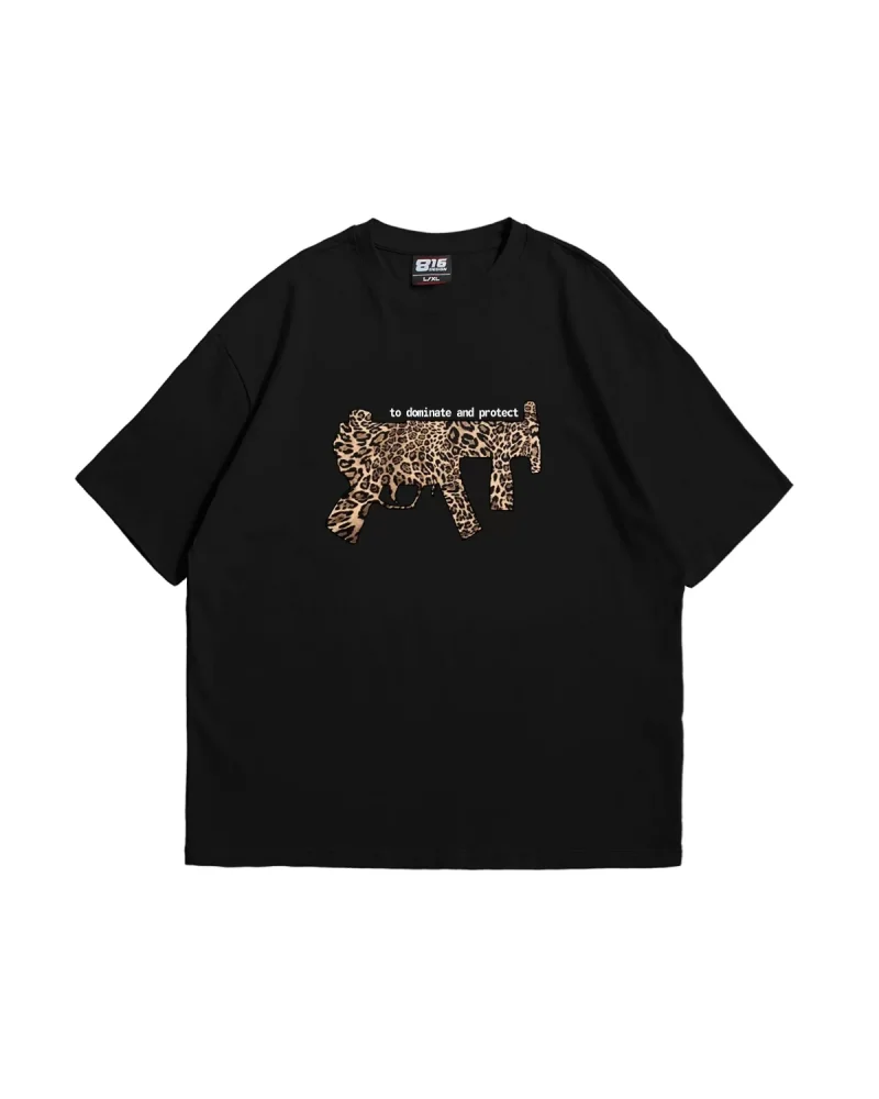 Dominante Leopar Baskılı Oversize Unisex Siyah Tshirt