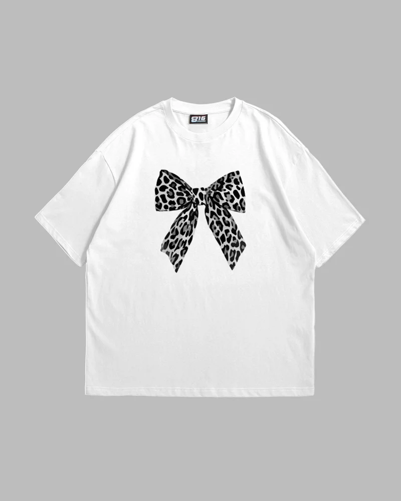 Fiyonk Leopar V2 Baskılı Oversize Unisex Beyaz Tshirt