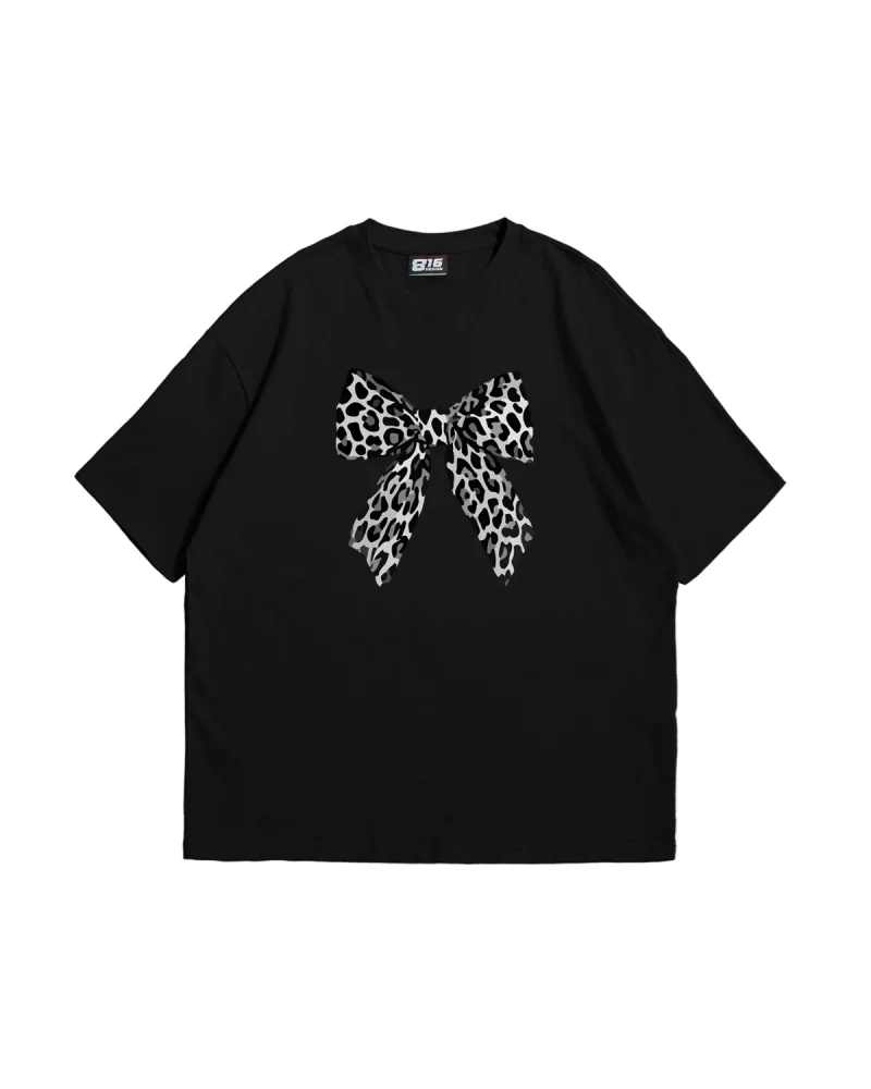 Fiyonk Leopar V2 Baskılı Oversize Unisex Siyah Tshirt