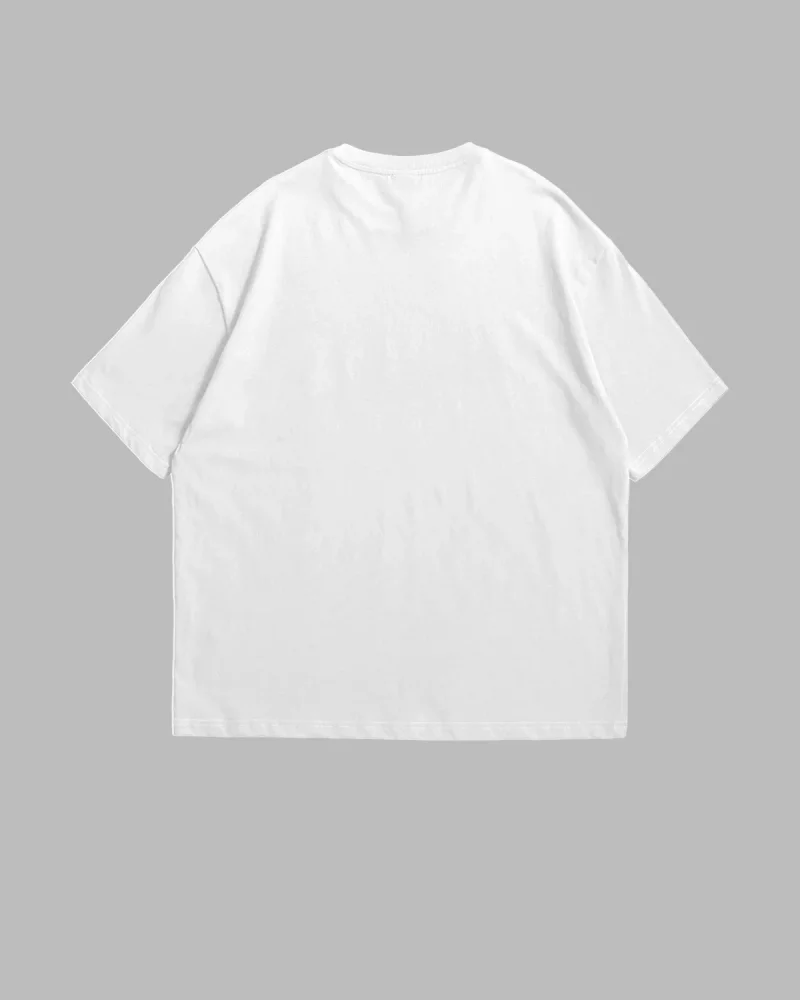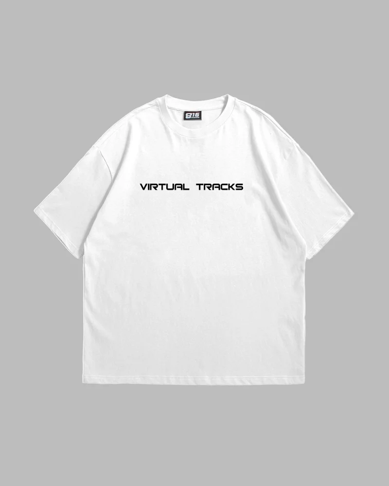 Vırtual Tracks Baskılı Oversize Unisex Beyaz Tshirt