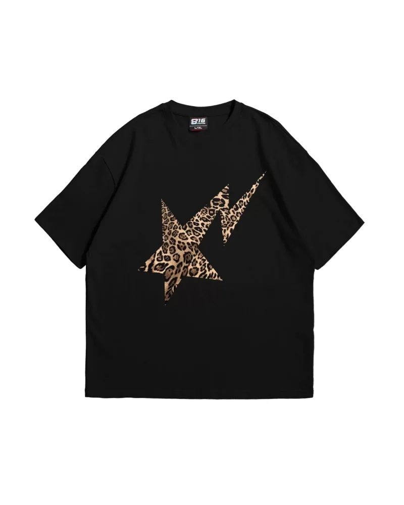 Leopar Falling Star Oversize Unisex Siyah Tshirt
