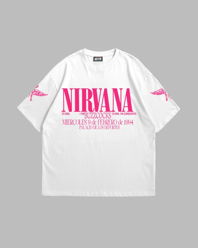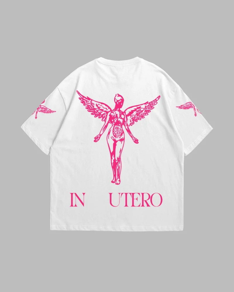Nirvana In Utero Pembe Baskılı Oversize Unisex Beyaz Tshirt