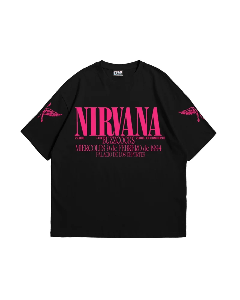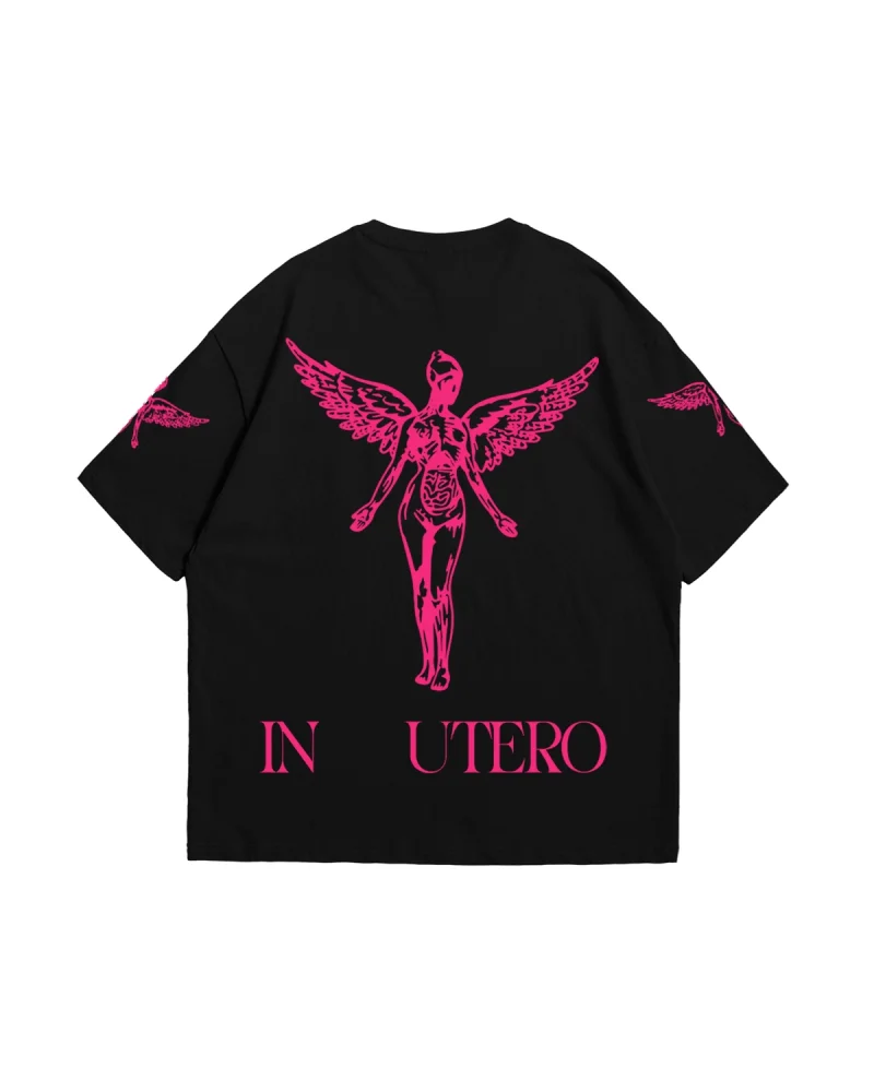 Nirvana In Utero Pembe Baskılı Oversize Unisex Siyah Tshirt