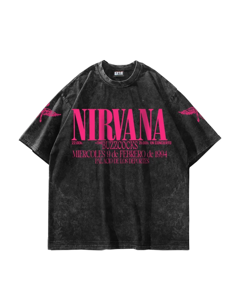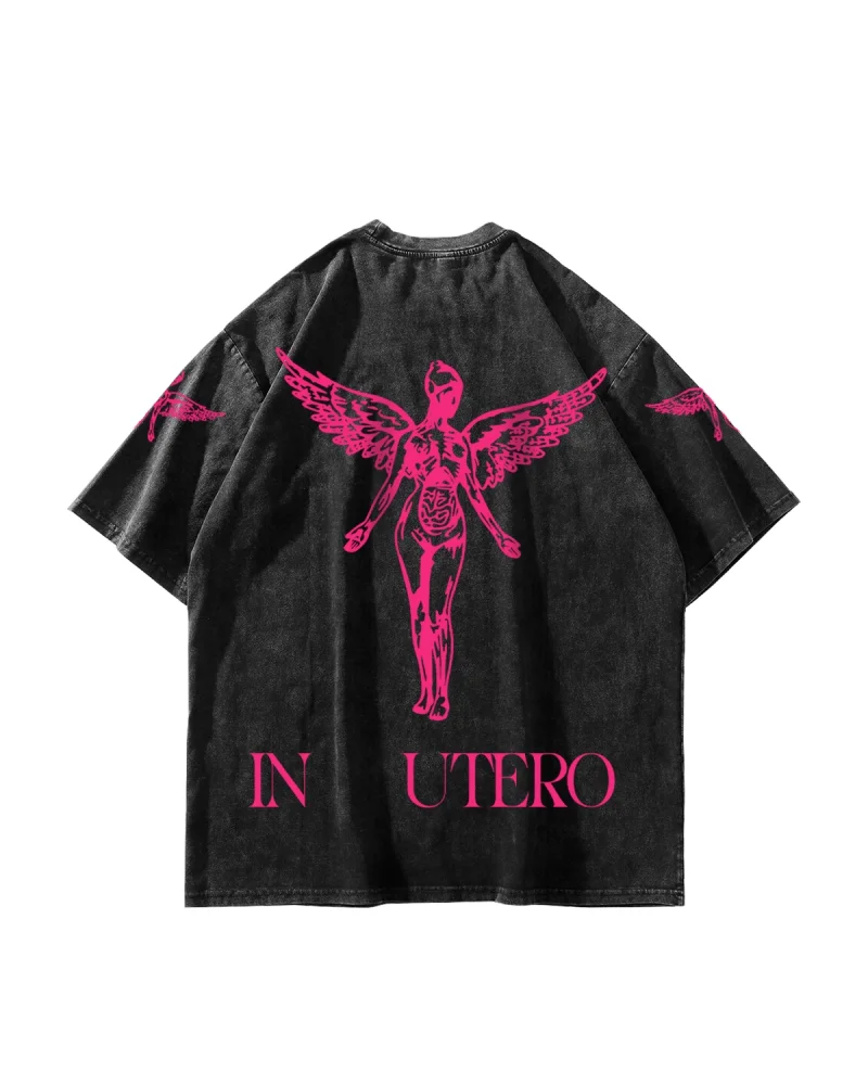 Nirvana In Utero Pembe Baskılı Oversize Unisex Yıkamalı Siyah Tshirt