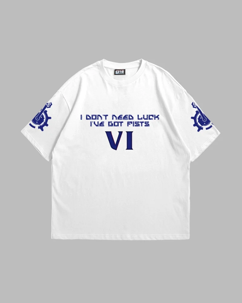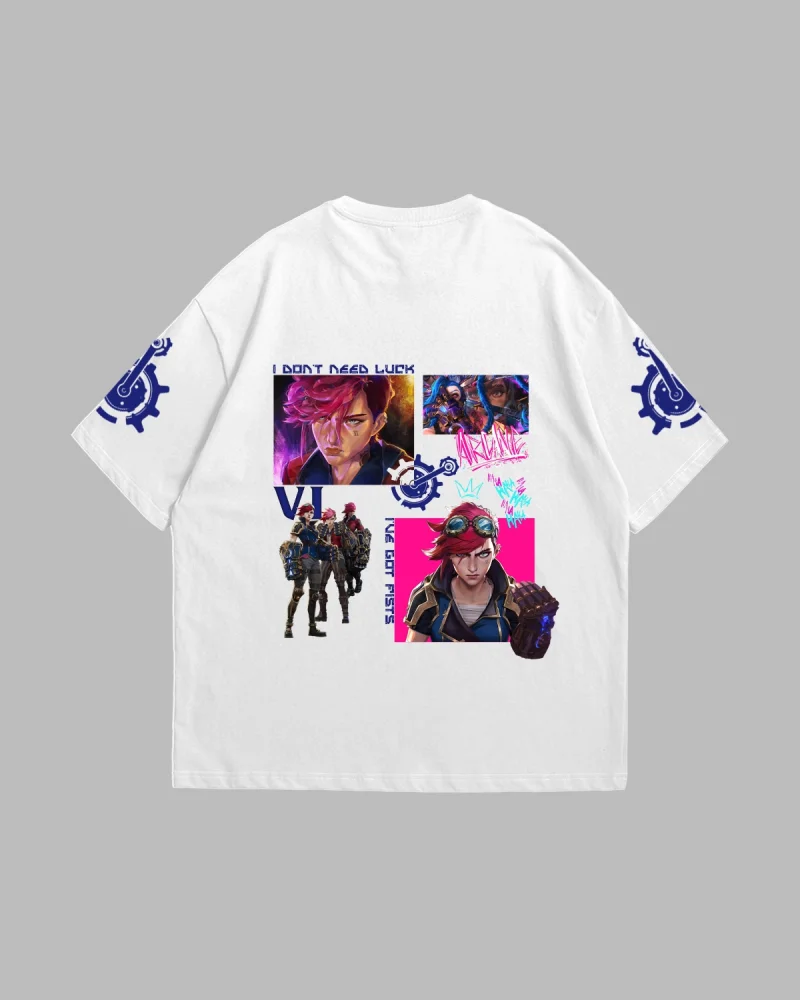 VI Arcane Baskılı Oversize Unisex Beyaz Tshirt