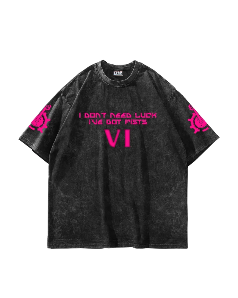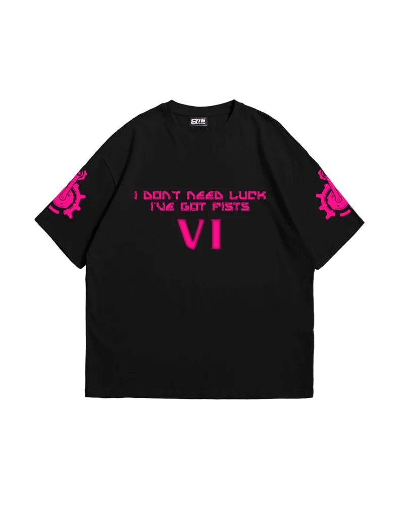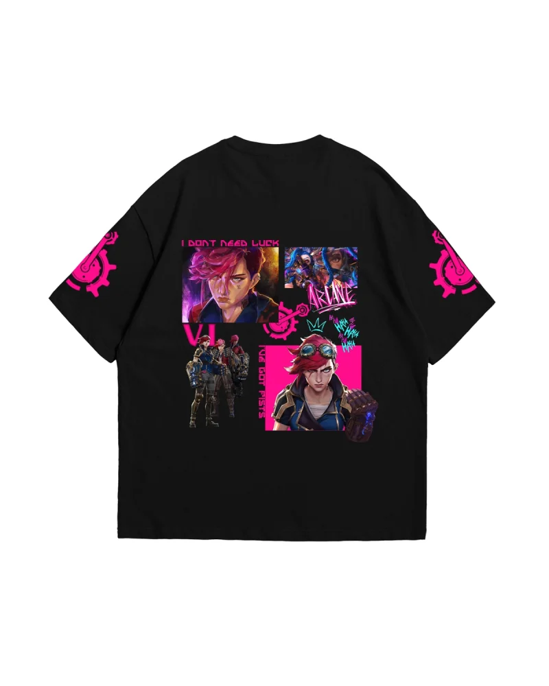 VI Arcane Baskılı Oversize Unisex Siyah Tshirt