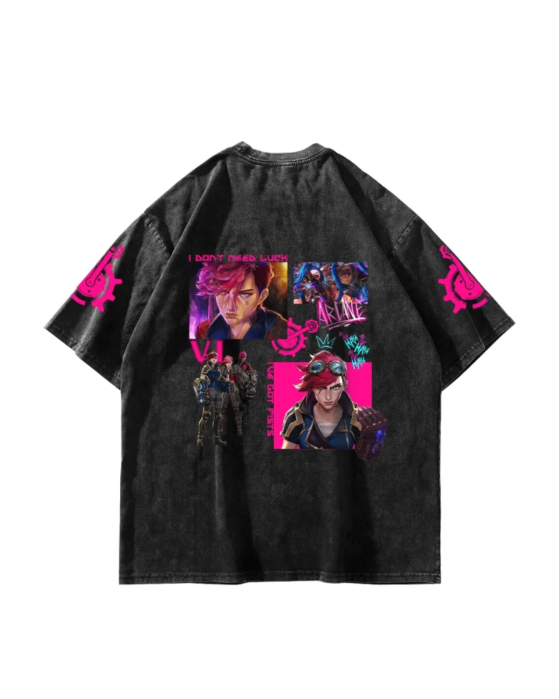 VI Arcane Baskılı Oversize Unisex Yıkamalı Siyah Tshirt