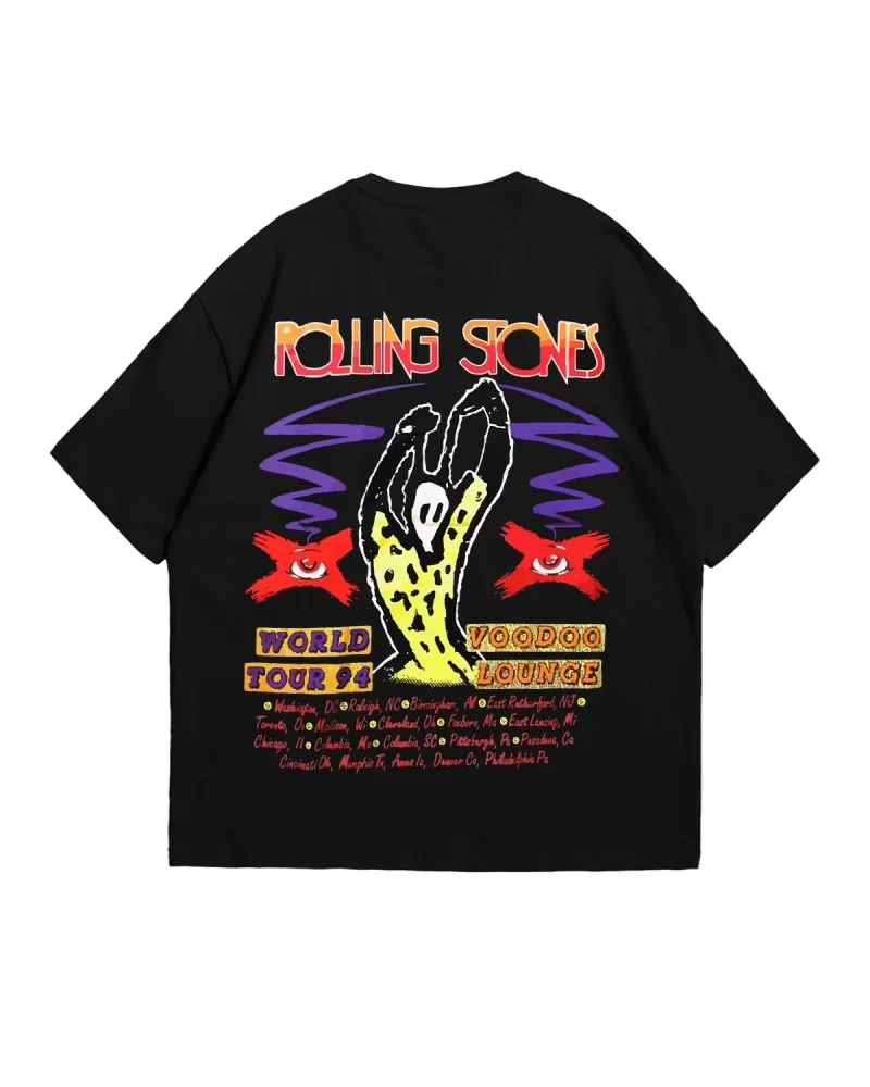 Voodoo Lounge Baskılı Oversize Unisex Siyah Tshirt