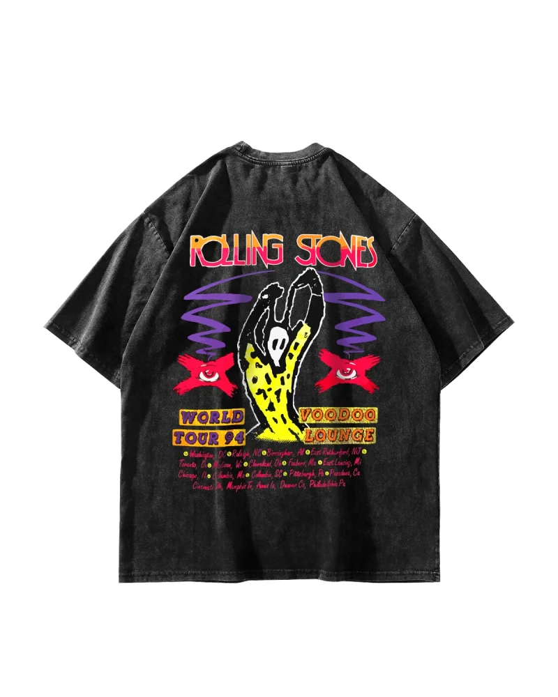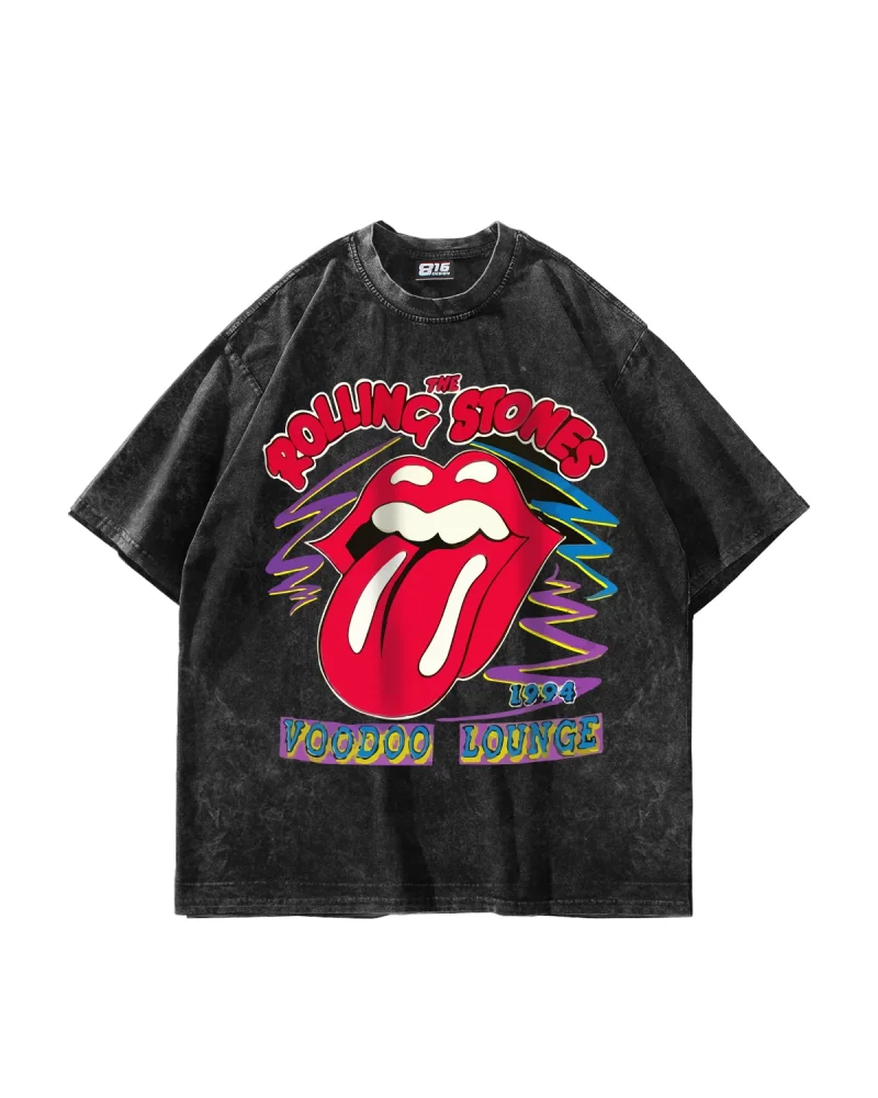 Voodoo Lounge Baskılı Oversize Unisex Yıkamalı Siyah Tshirt