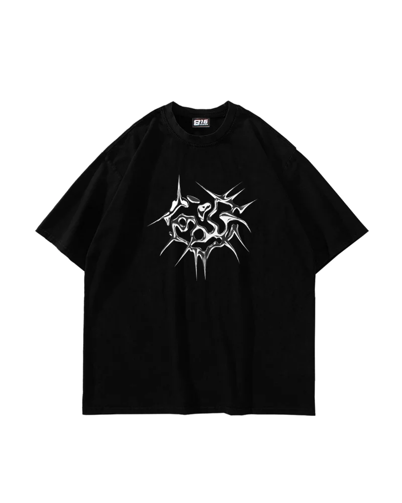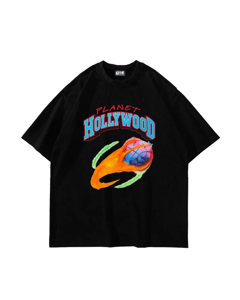 Hollywood Planet Baskılı Oversize Unisex Siyah Tshirt