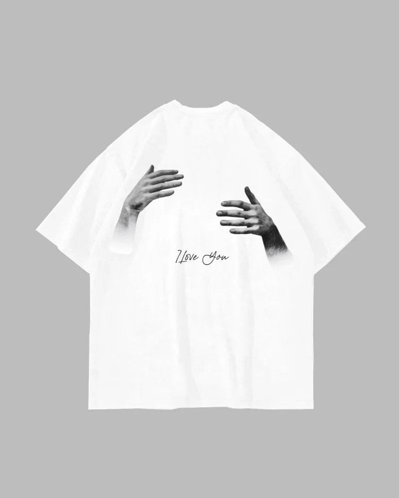 I Love You Baskılı Oversize Unisex Beyaz Tshirt