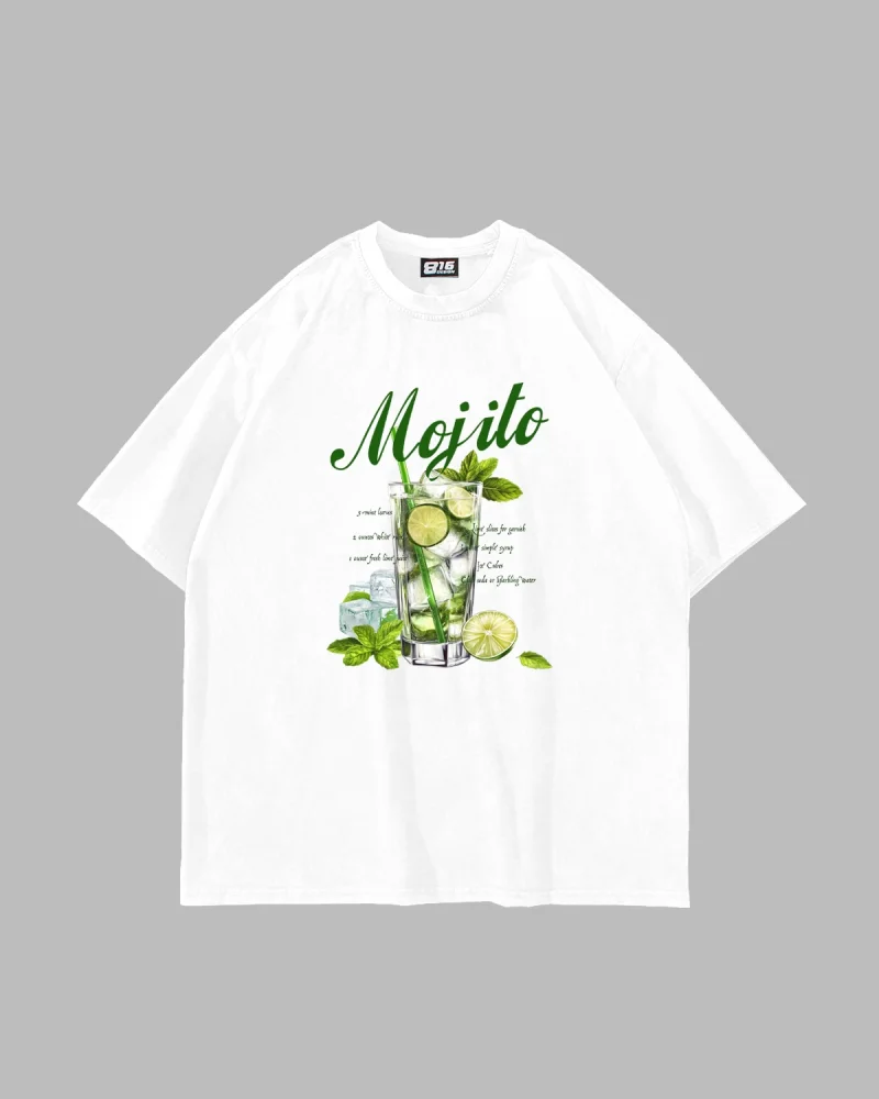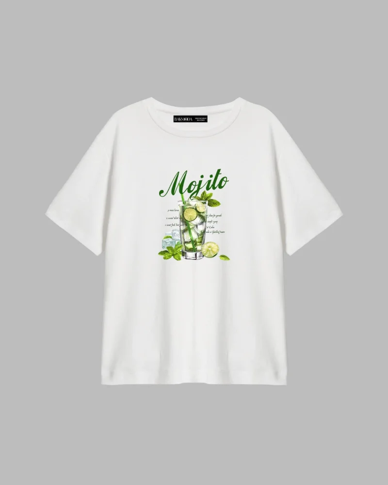 Iced Mojito Baskılı Oversize Unisex Beyaz Tshirt