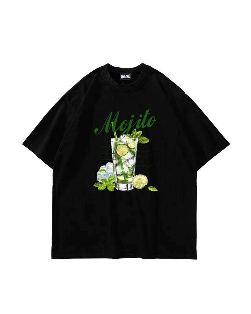 Iced Mojito Baskılı Oversize Unisex Siyah Tshirt